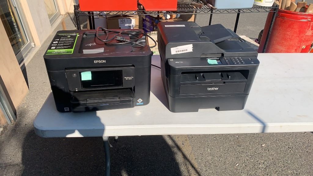 2 ALL IN ONE PRINTERS EPSON WF-4820 AND BROTHER MFC-L2730DW BOTH POWER ON, NO INK - RETAIL $568