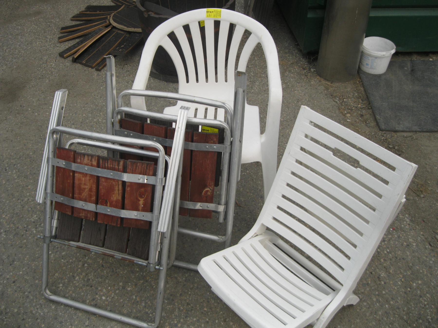 2 ALUMINUM FOLDING CHAIRS & 2 PLASTIC CHAIRS