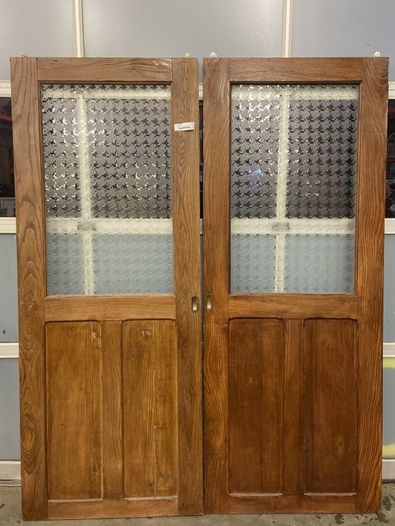 2 ANTIQUE 30 INCH SLIDING POCKET DOORS W/ GLASS PANELS