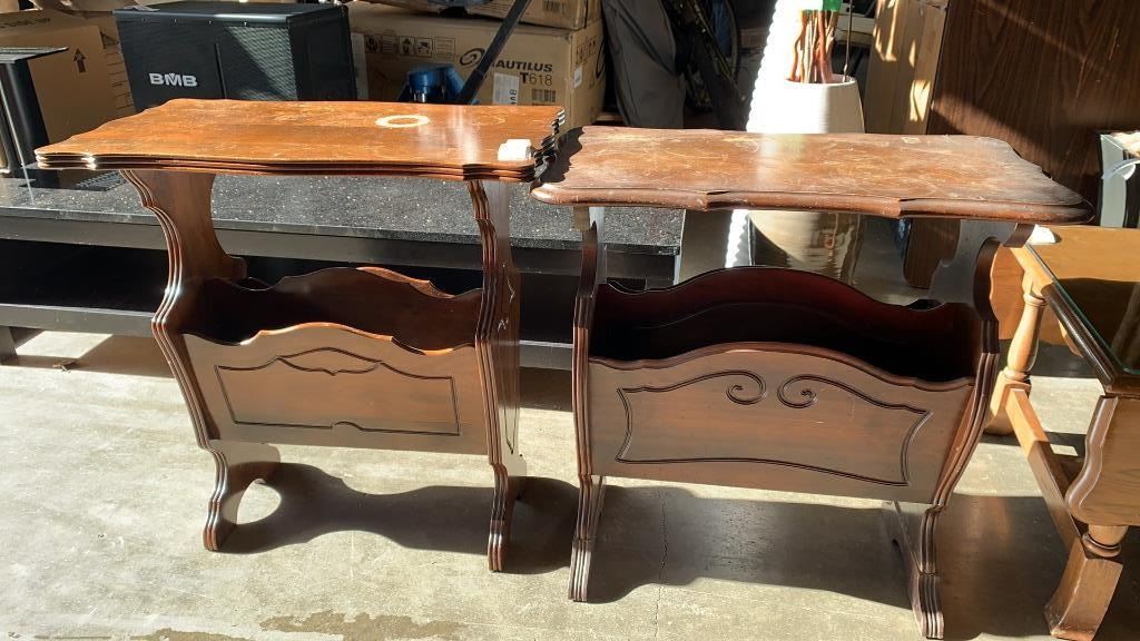 2 ANTIQUE MAGAZINE RACK SIDETABLES