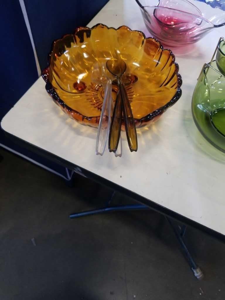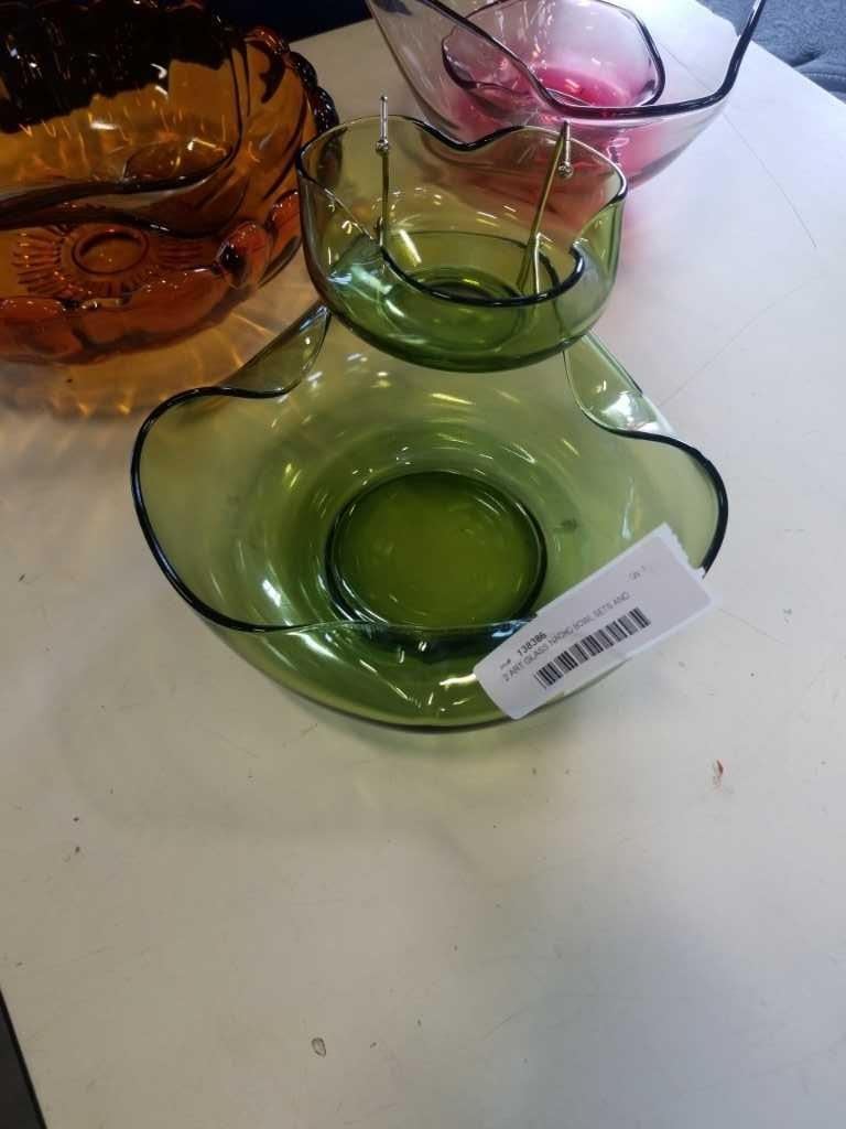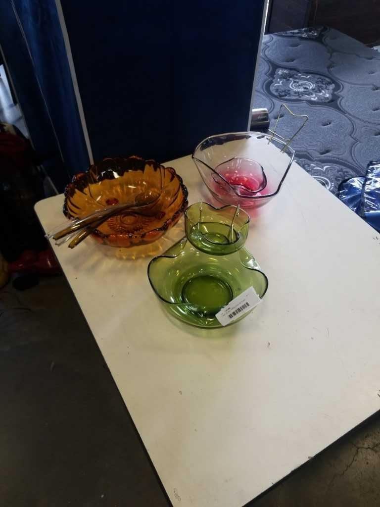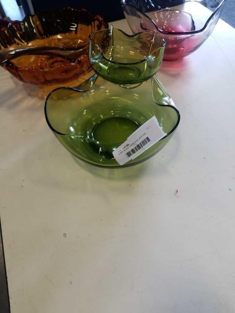 2 ART GLASS NACHO BOWL SETS AND SALAD BOWL