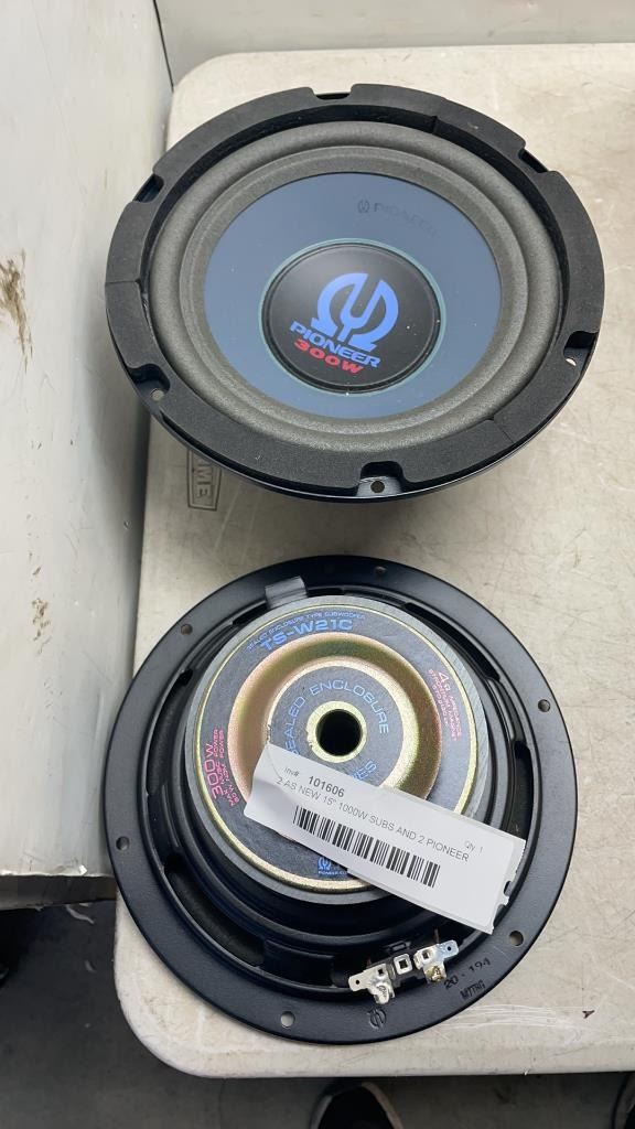 2 AS NEW 15" 1000W SUBS AND 2 PIONEER TS-W21C 8" SUBS