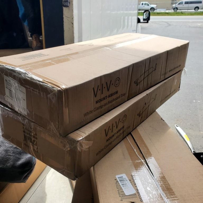 2 AS NEW WHITE CLAMP ON KEY BOARD TRAYS RETAIL $280