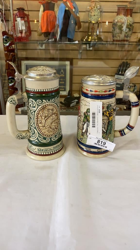 2 AVON STEINS - 8 INCHES TALL, FOOTBALL AND HUNTING