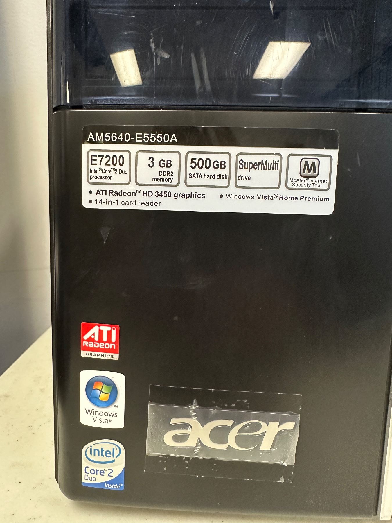 3 Acer AM5640-E5550A 500 GB hard disk, 3GB DDR2 memory, E7200 Intel core 2 duo processor