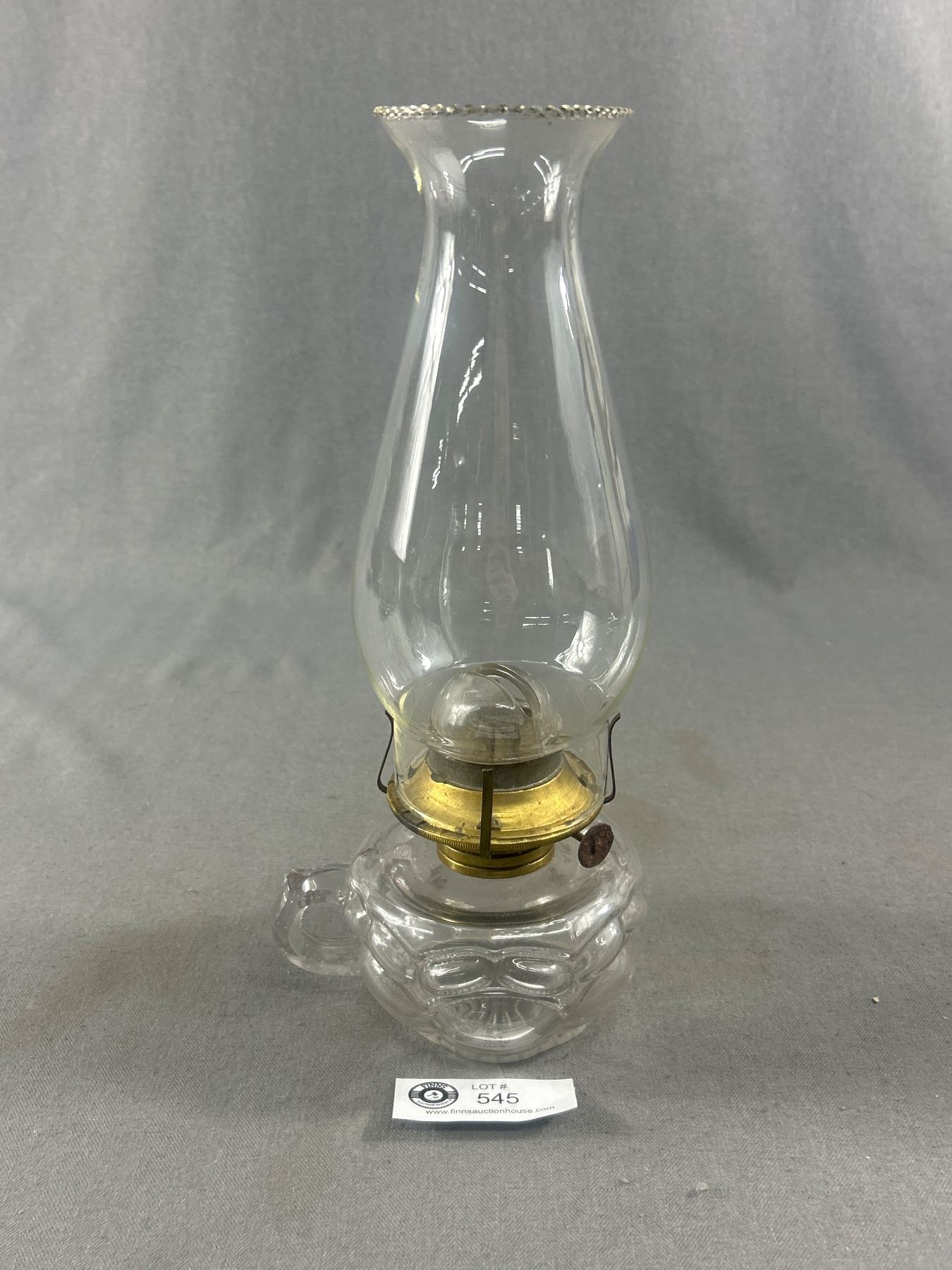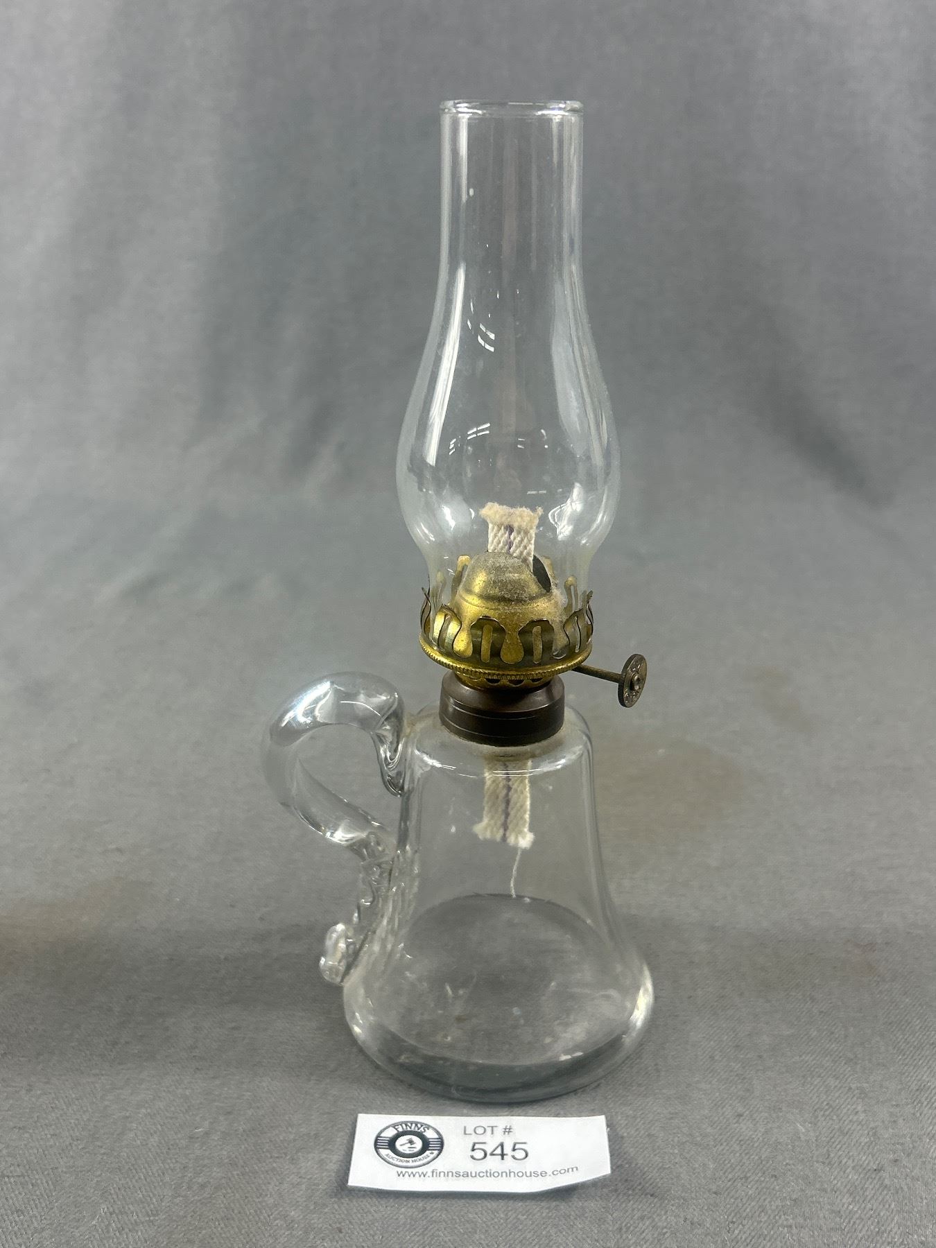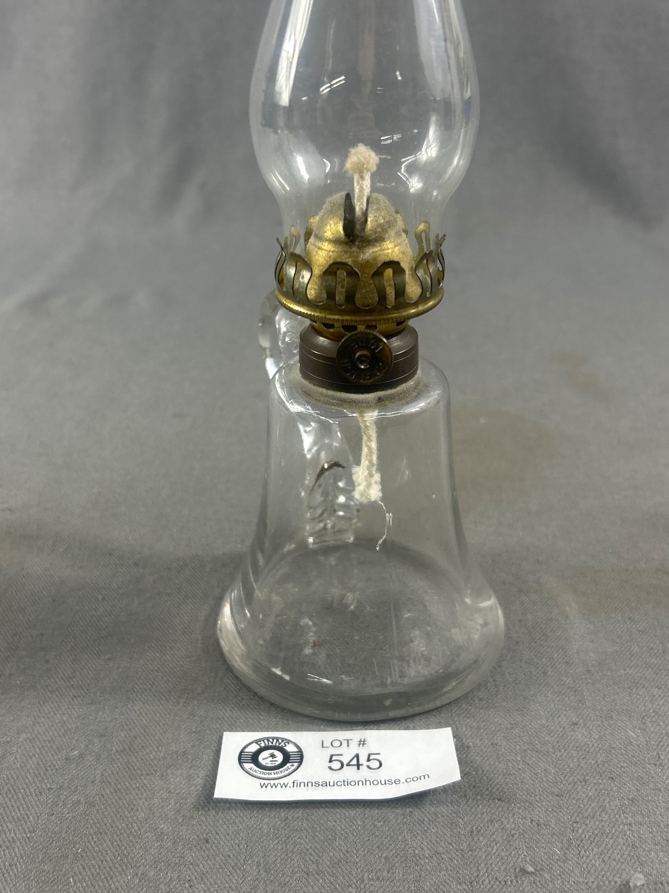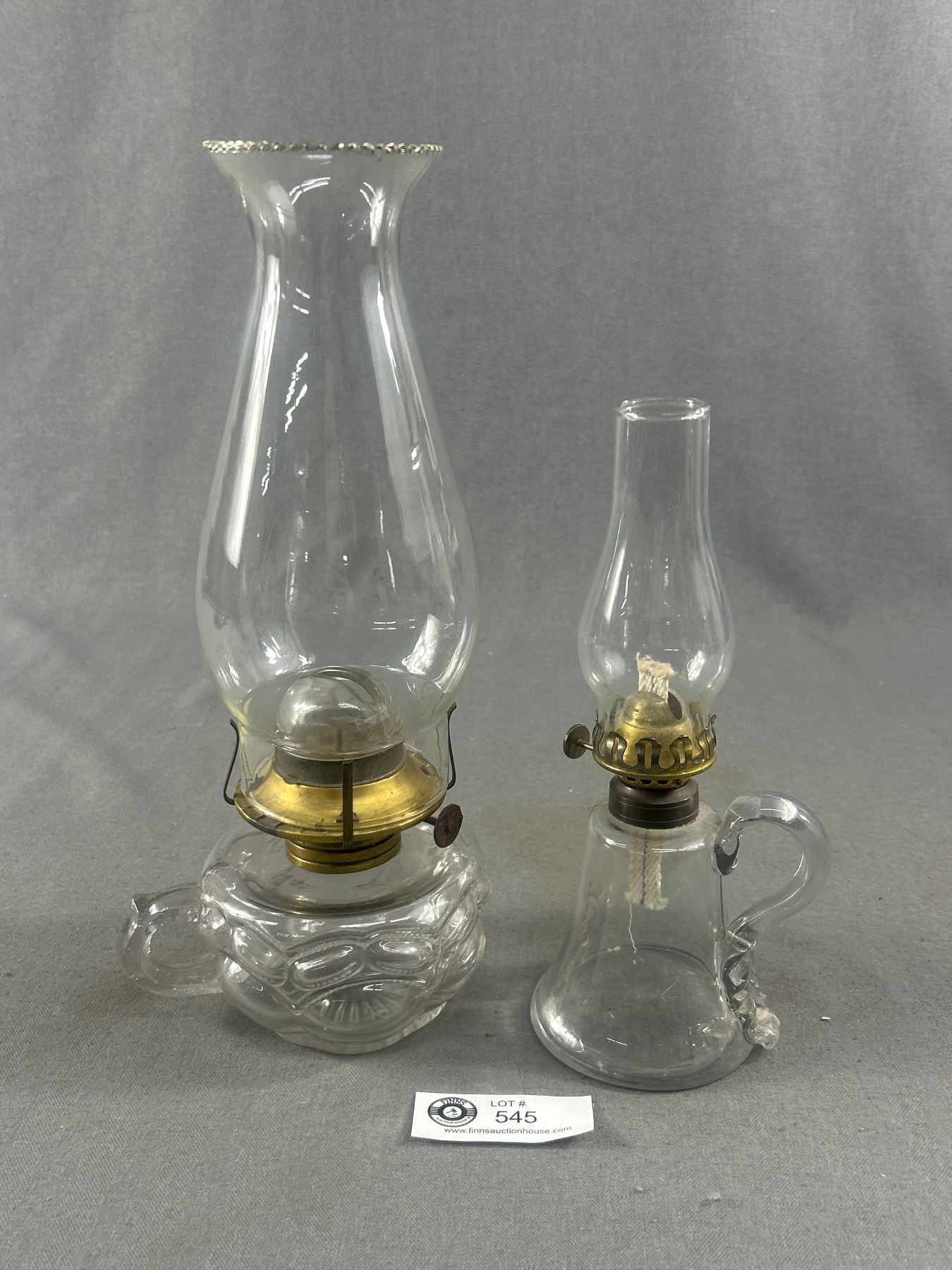2 Antique Glass Oil Finger Lamps. Approx. 12"H & English Made 9.5" H