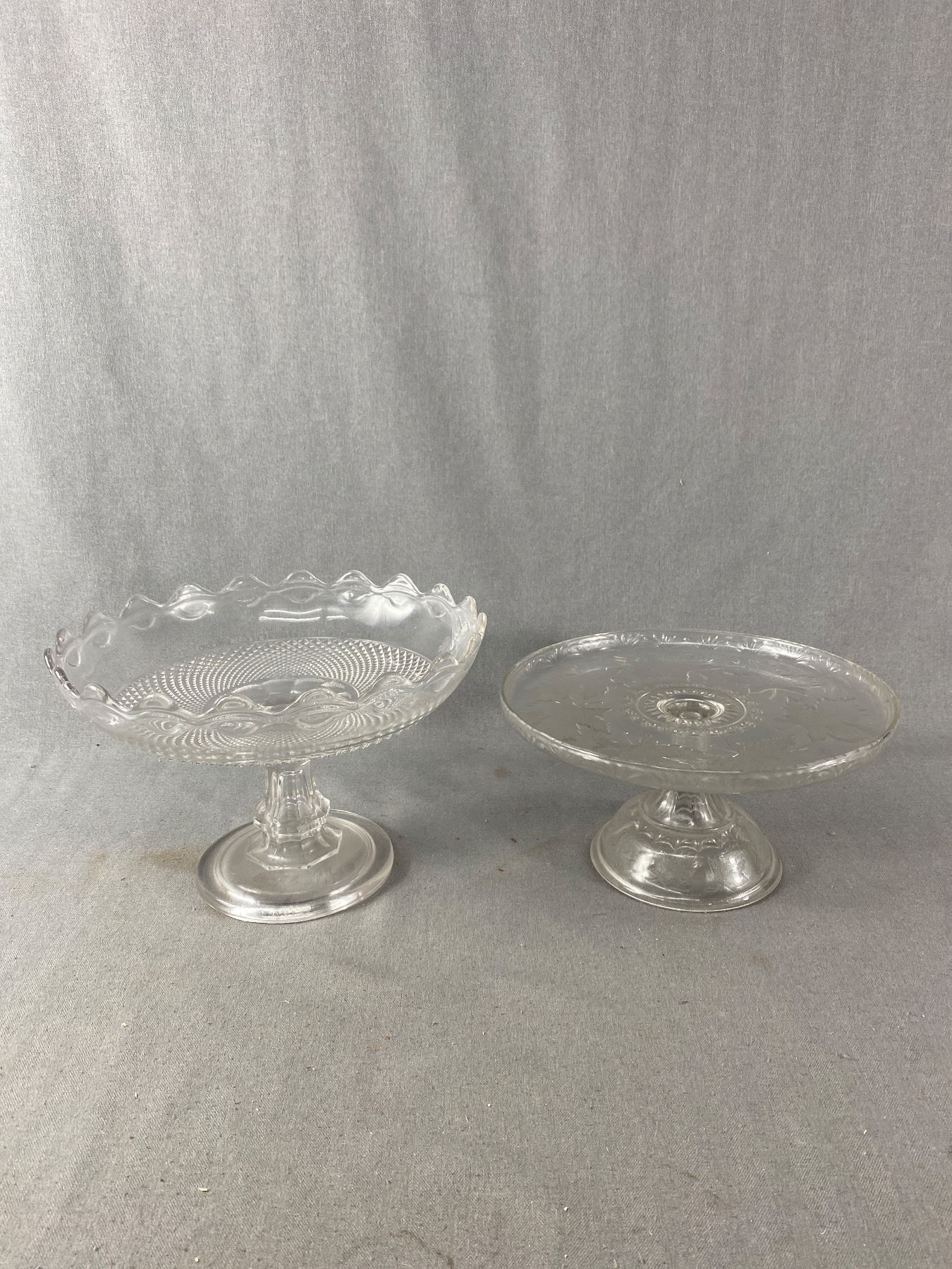 2 Antique Pressed Glass Compotes - 7" H x 10.5" D & 5.5" H x 10" D