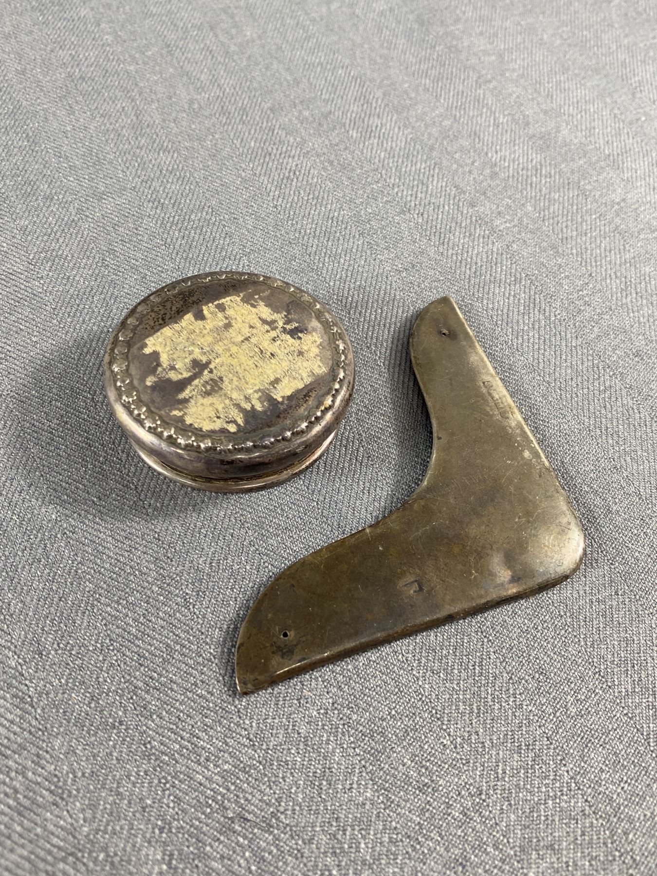 2 Antique Sterling Items- Jar Lid & Book Corner