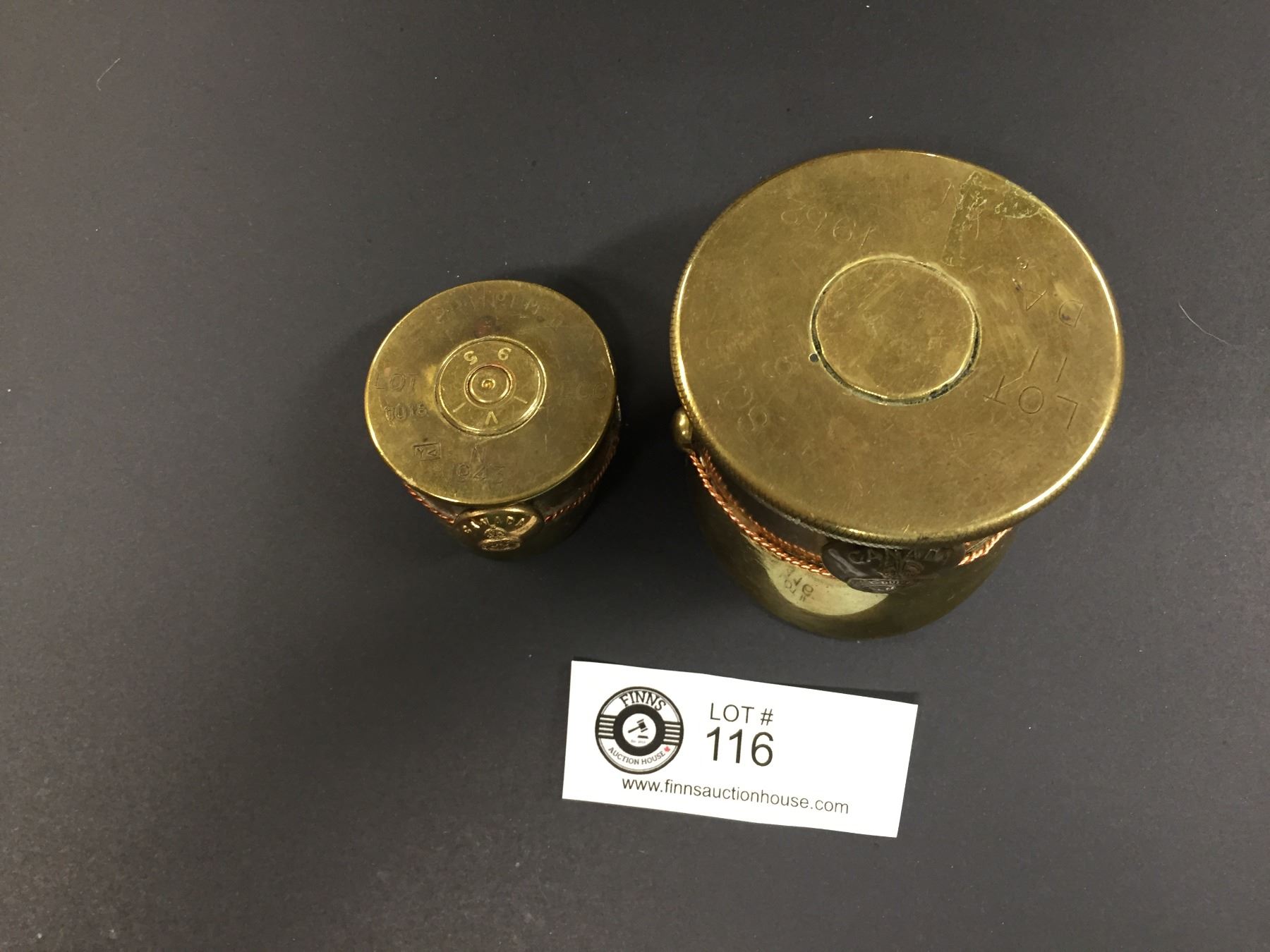 2 Artillery Shells that are Made into Trench Art Using Canadian Military Buttons. Very Well Made