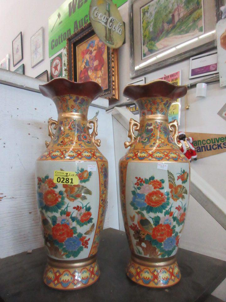 2 Asian Glazed Ceramic Vases - 19" tall x 7" diameter