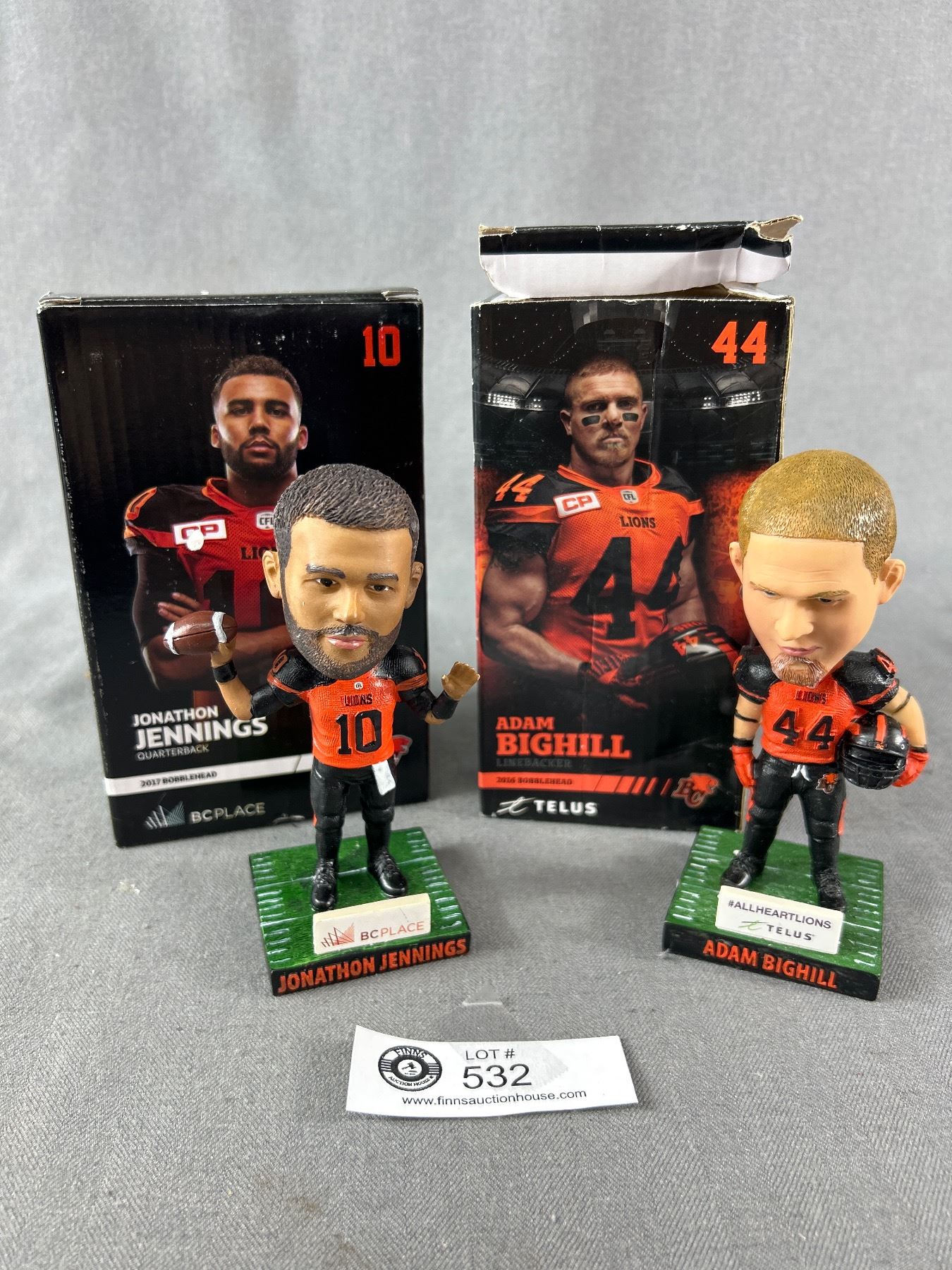 2 B.C. Lions Bobbleheads - Adam Bighill & Jonathon Jennings