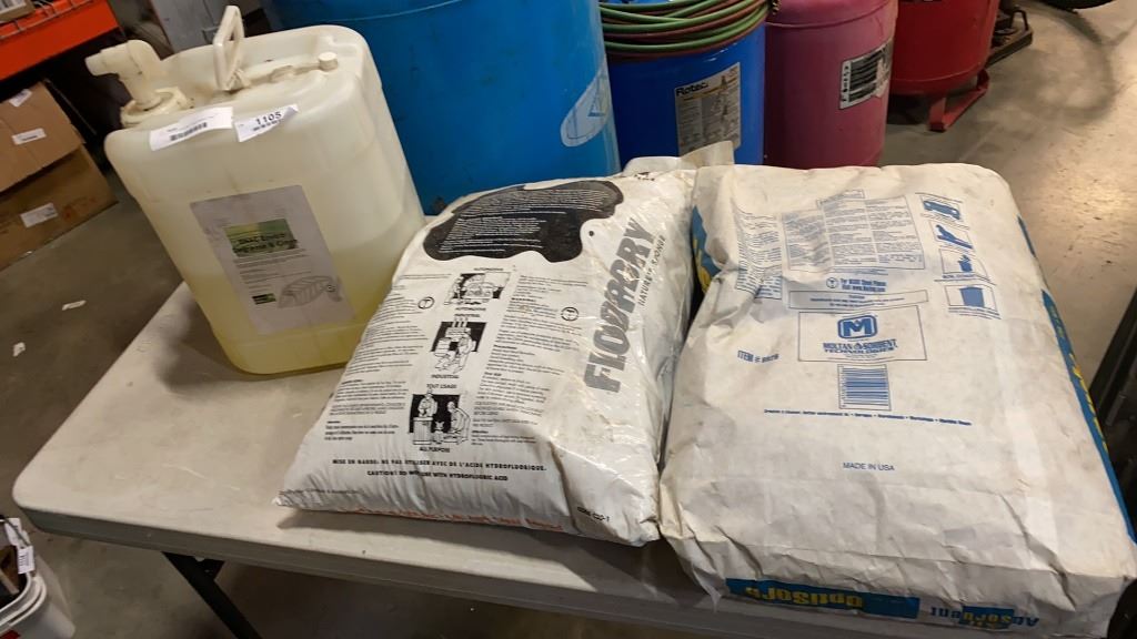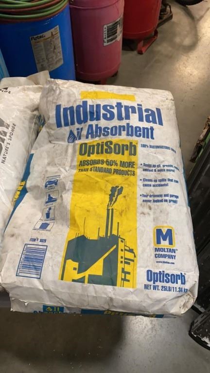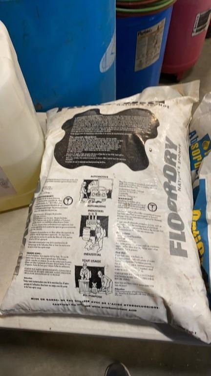 2 BAGG OF FLOOR DRY ABSORBANT AND PARTIAL JUG OF DEGREASER