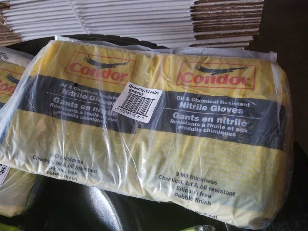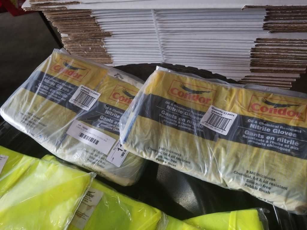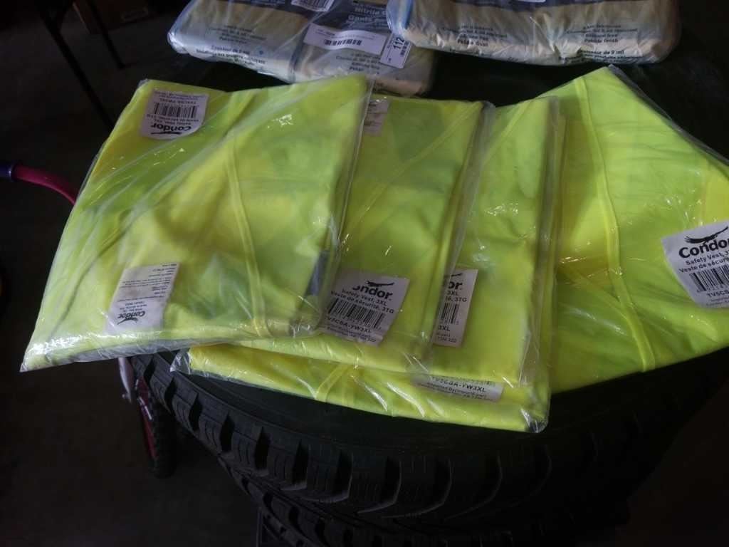 2 BAGS OF NEW 9MM NITRILE GLOVES AND 3XL HIGH VIS SHIRTS