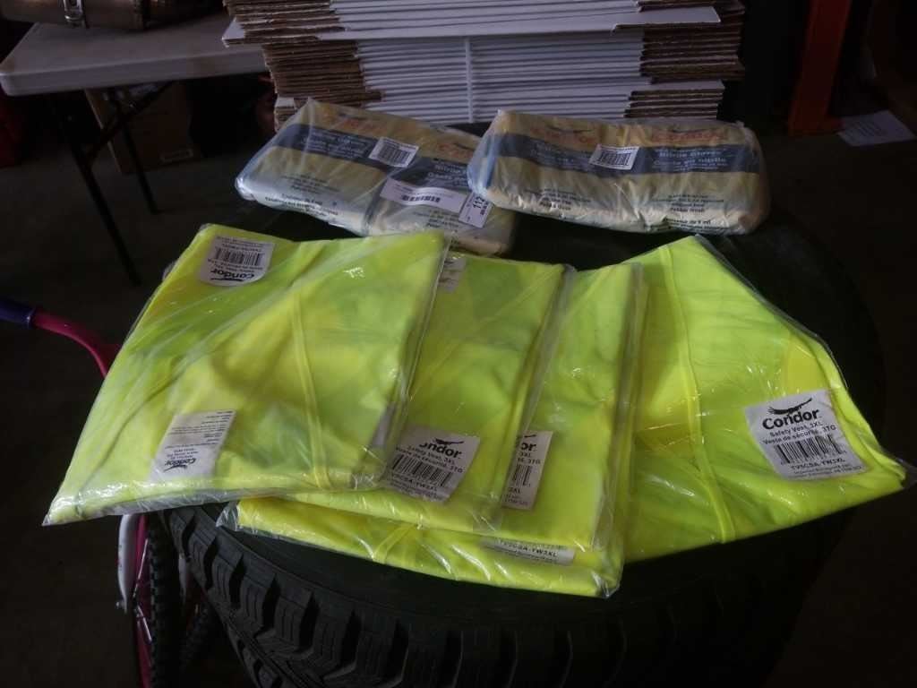 2 BAGS OF NEW 9MM NITRILE GLOVES AND 3XL HIGH VIS SHIRTS