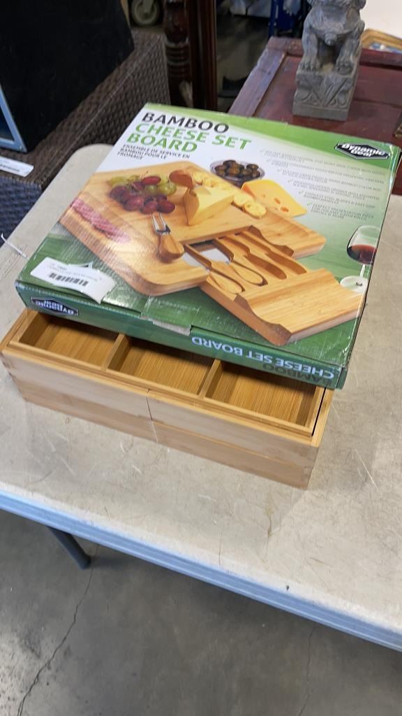 2 BAMBOO CUTLERY TRAYS AND CHEESE BOARD