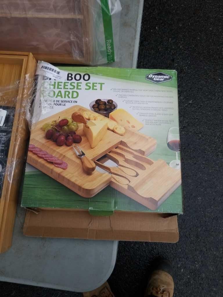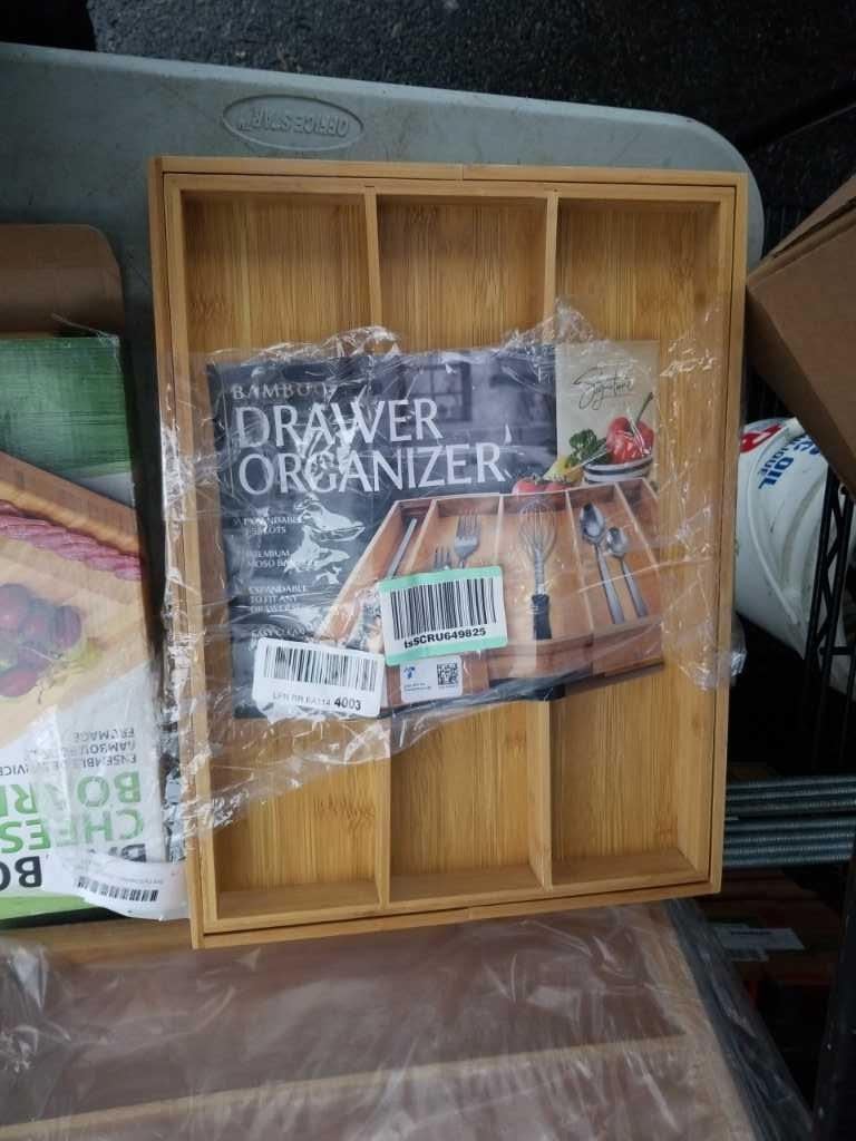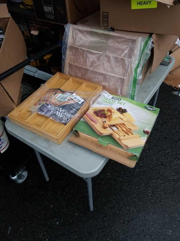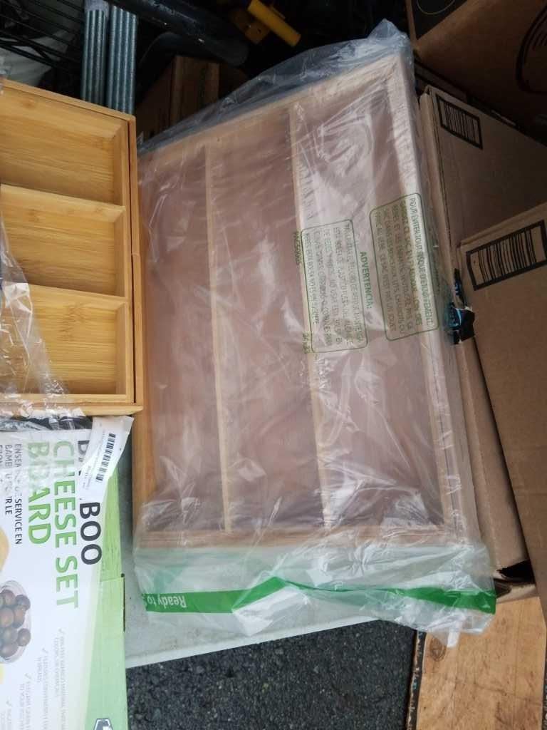 2 BAMBOO DRAWER ORGANIZERS AND BAMBOO CHEESE SET BOARD