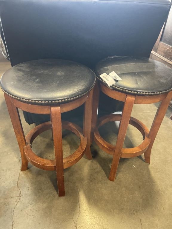 2 BAR STOOLS W/ LEATHER TOP