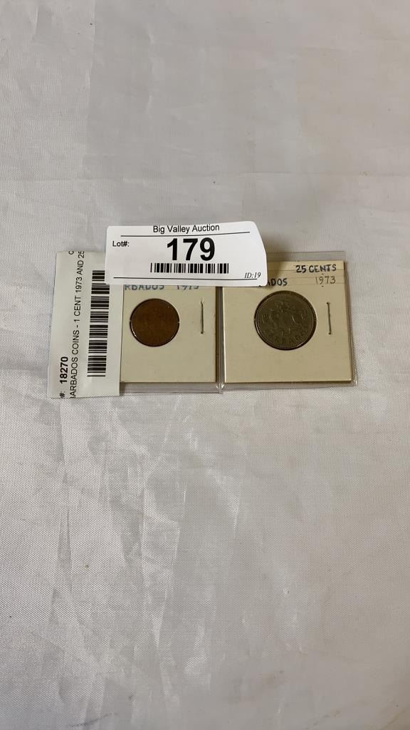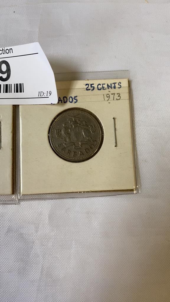 2 BARBADOS COINS - 1 CENT 1973 AND 25 CENT 1973