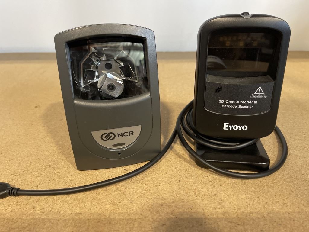 2 BARCODE SCANNERS, NCR MODEL 1000 AND EYOYO MODEL EY-2200, ONLY ONE CABLE
