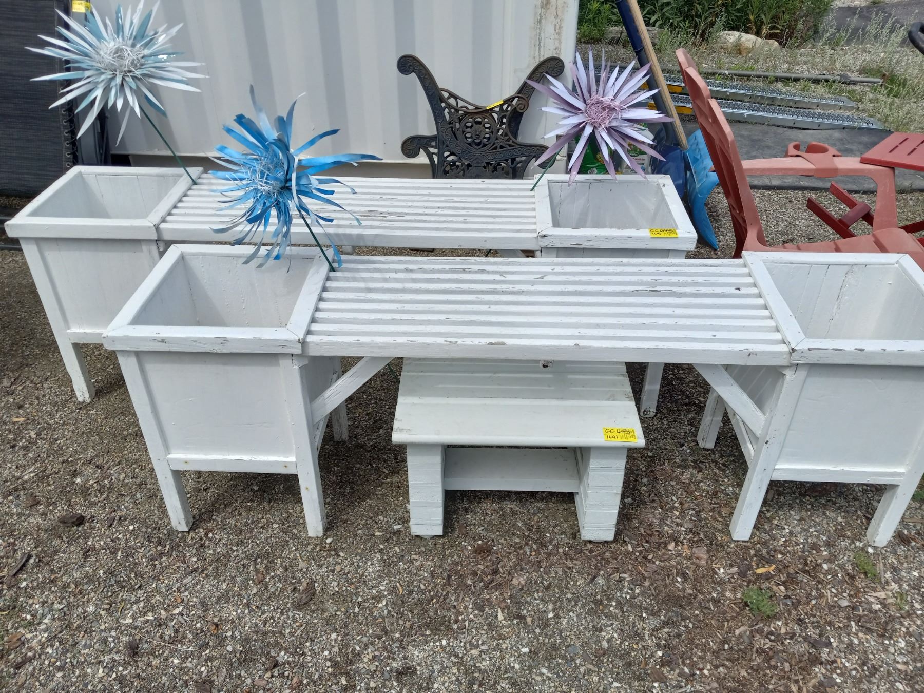 2 BENCH/PLANTER COMBOS & SMALL TABLE