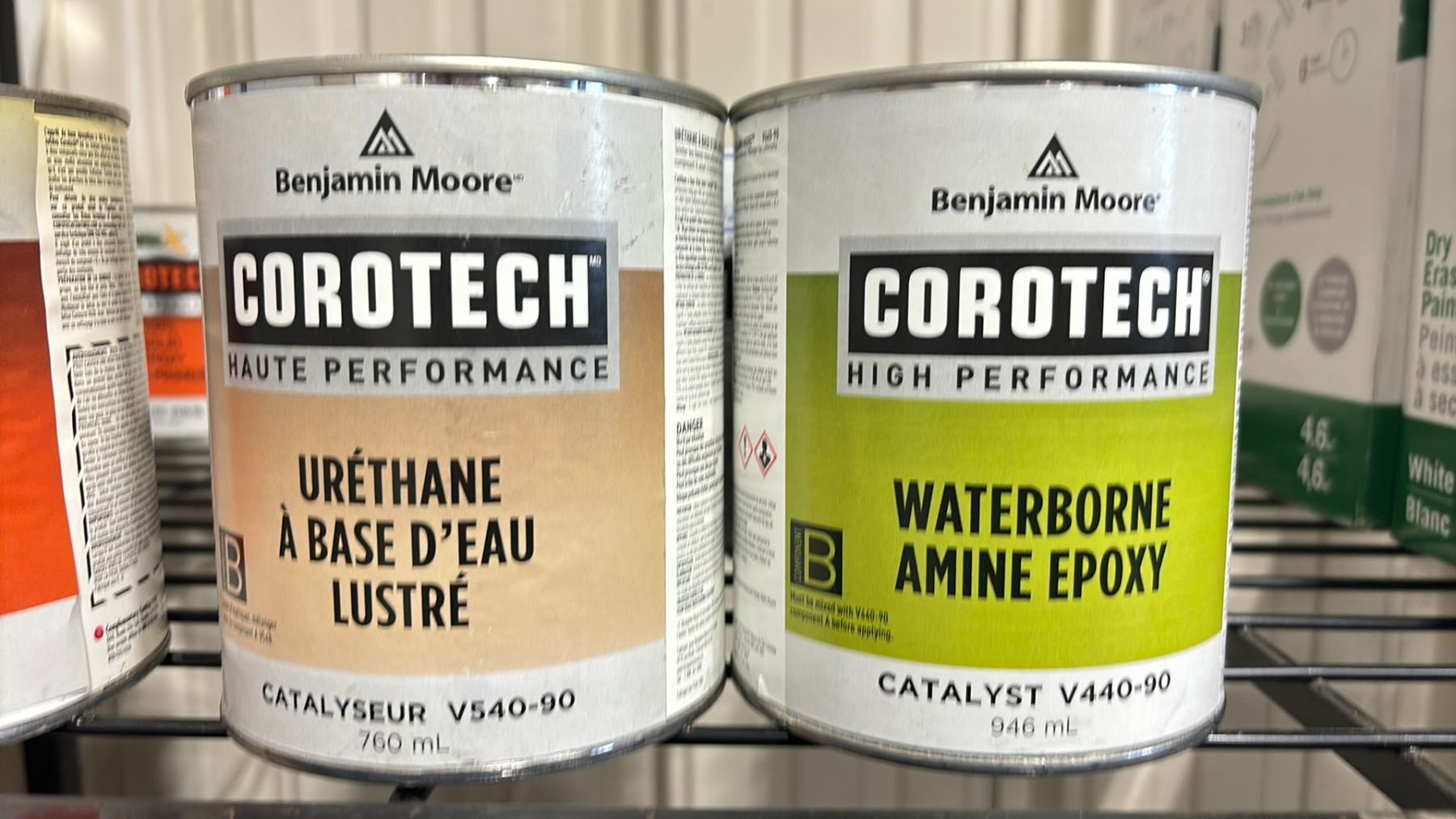 2 BENJAMIN MOORE COROTECH HIGH PERFORMANCE WATERBORNE URETHANE GLOSS CATALYST ( 760 ML EACH ) & 2 BENJAMIN MOORE COROTECH HIGH PERFORMANCE WATERBORNE AMINE EPOXY CATALYST ( 946 ML EACH )