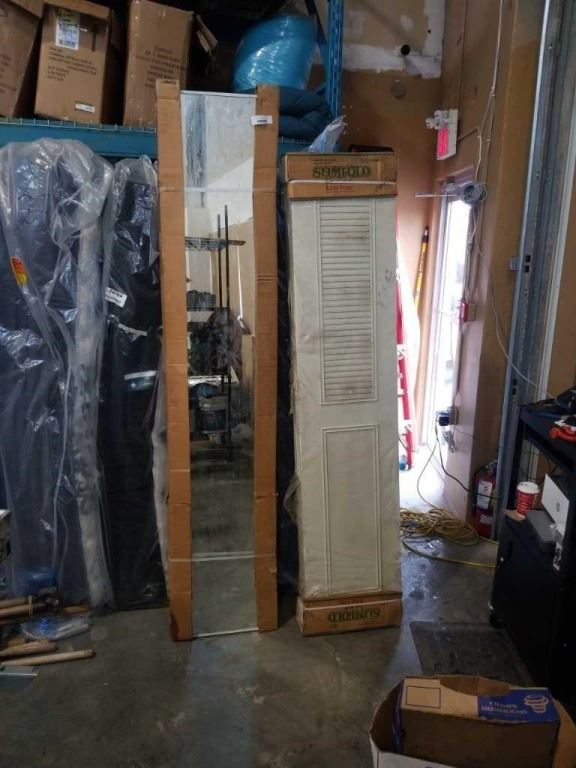 2 BIFOLD DOORS - 6 FOOT TALL METAL AND 90 INCH TALL MIRROR DOORS