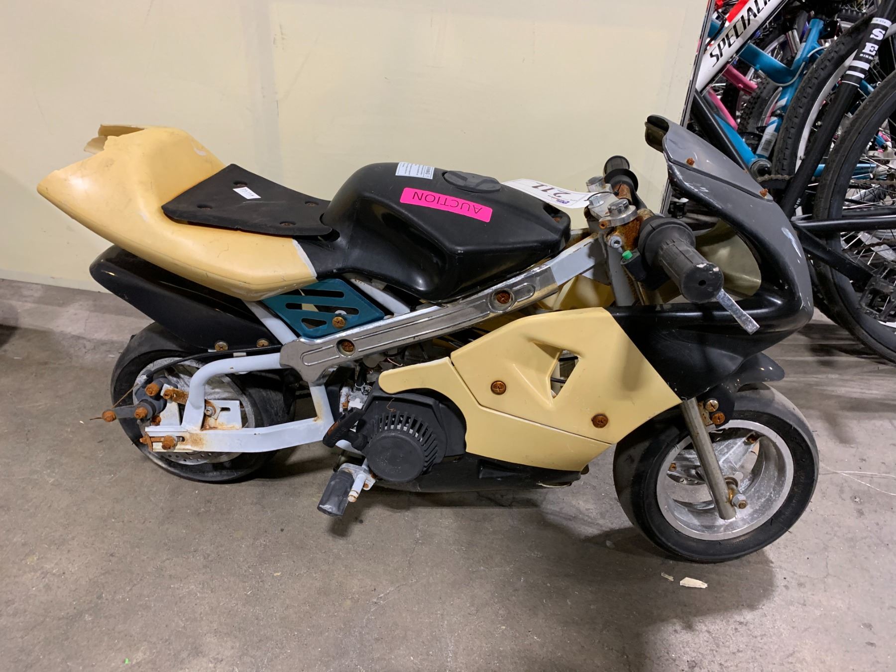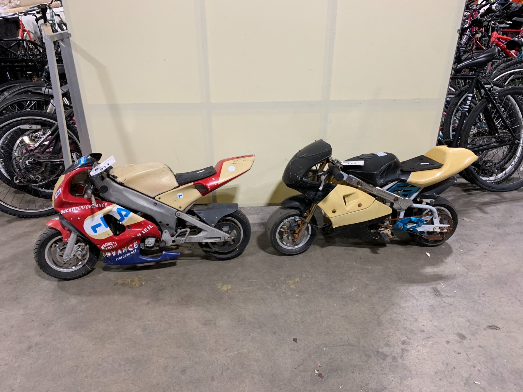 2 BIKES: FILA RED/YELLOW & NO NAME YELLOW/BLACK GAS OPERATED SMALL KIDS BIKE *NO KEYS*