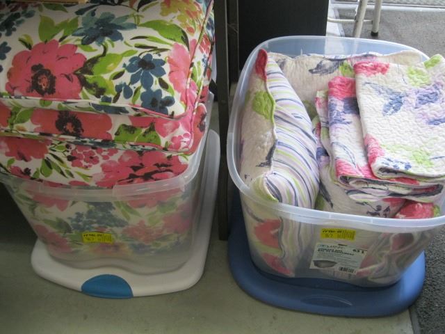 2 BINS OF ASSORTED COLORFUL PILLOWS