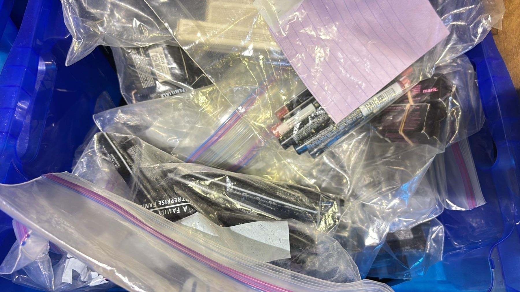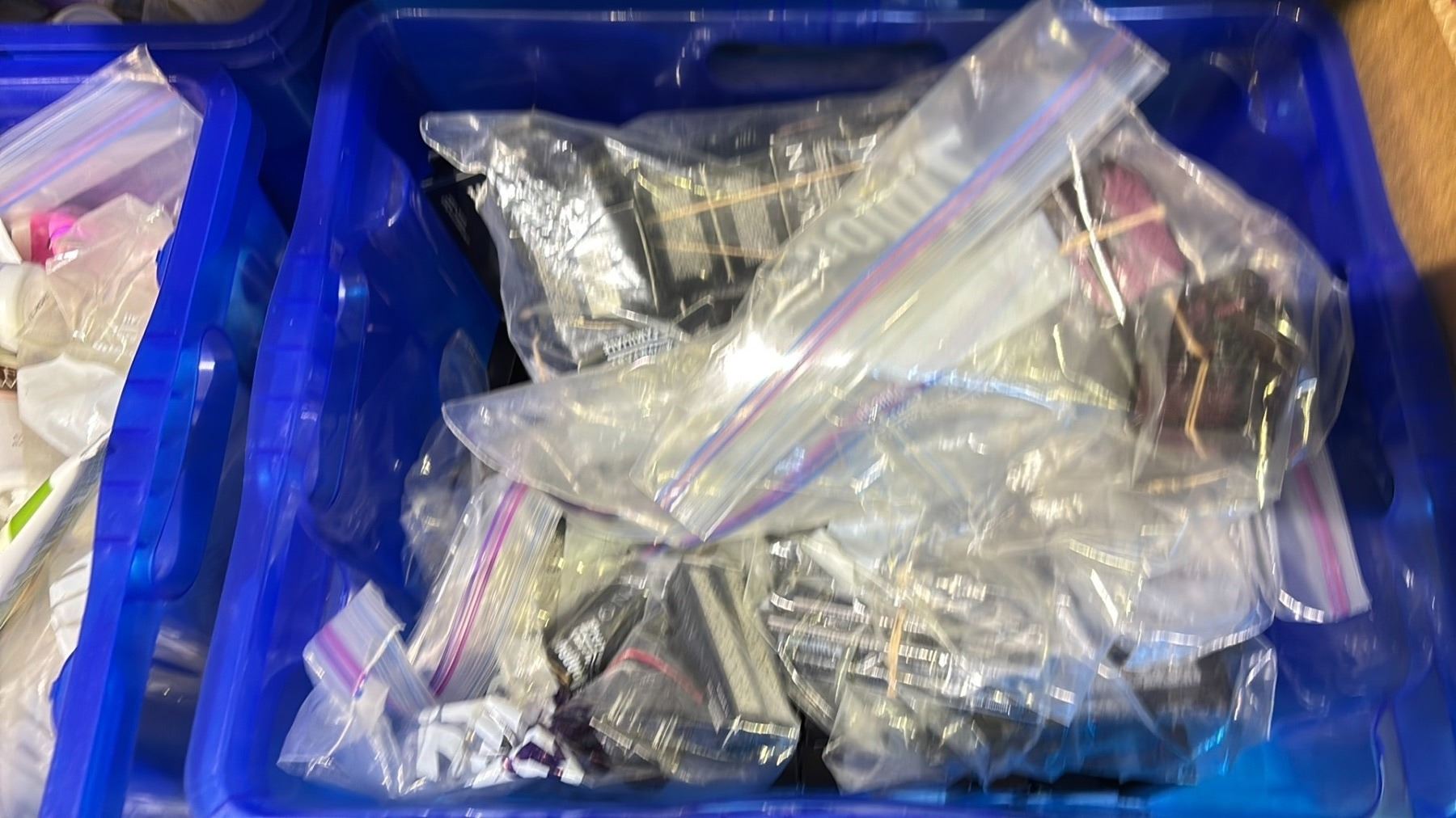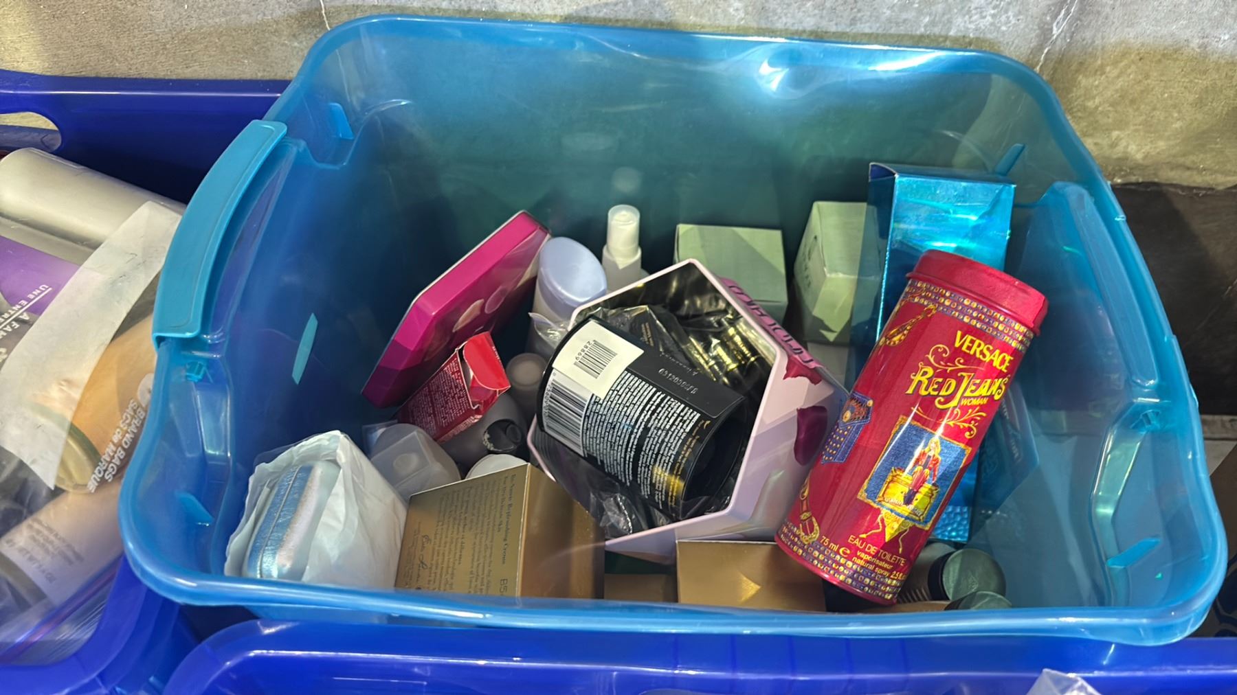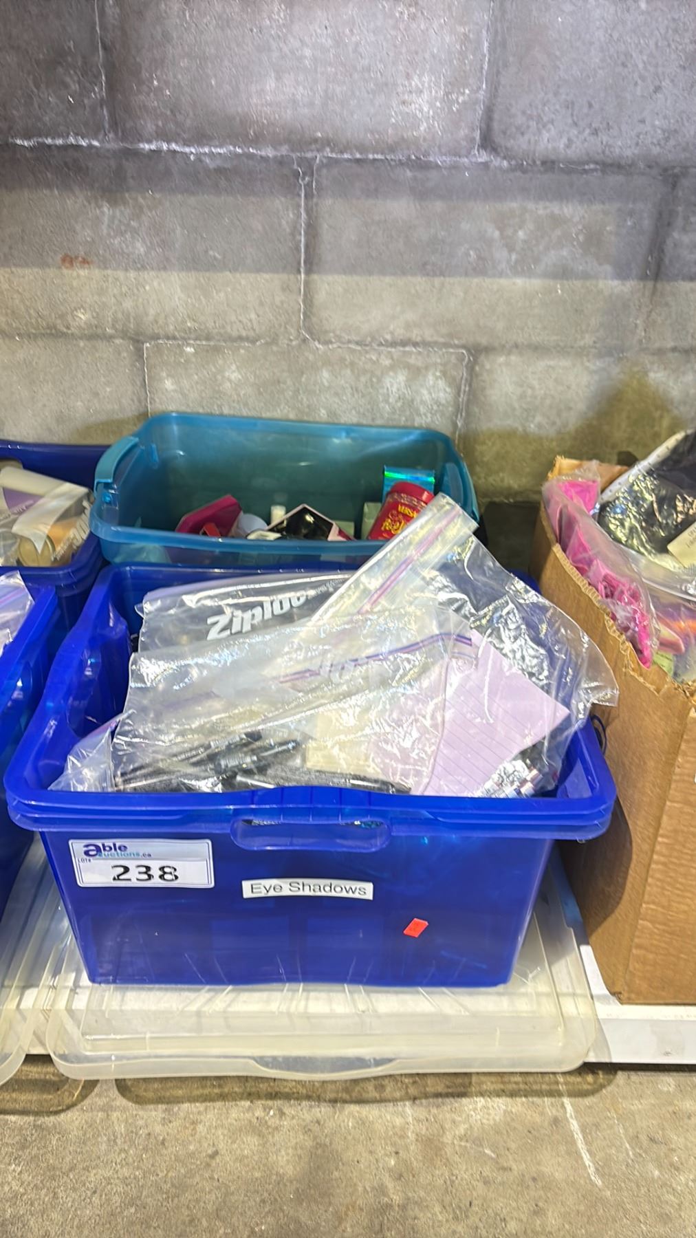 2 BINS OF ASSORTED MAKE UP, FACE CREAM, SHAMPOO, VERSACE RED JEANS PERFUME & MORE