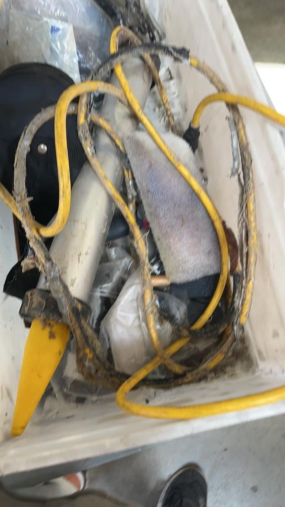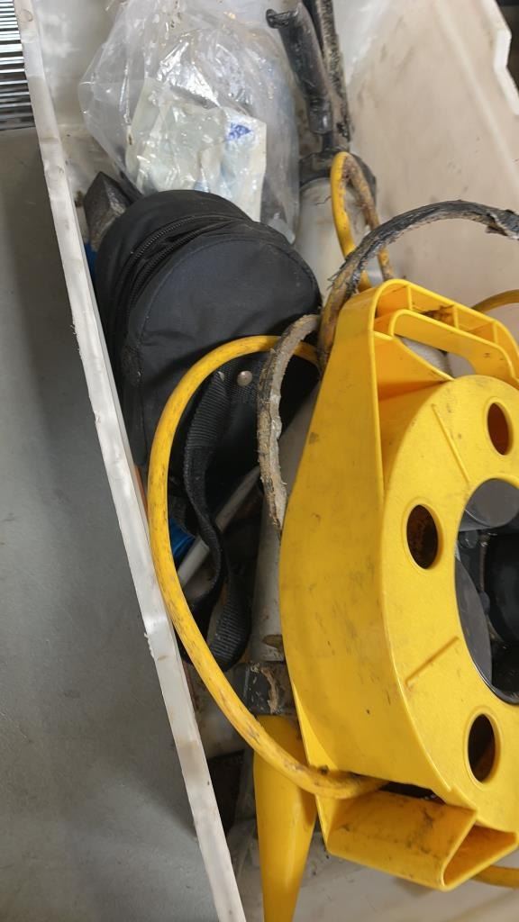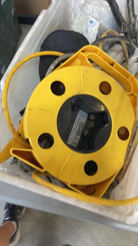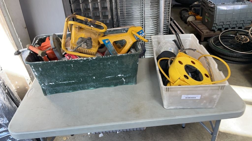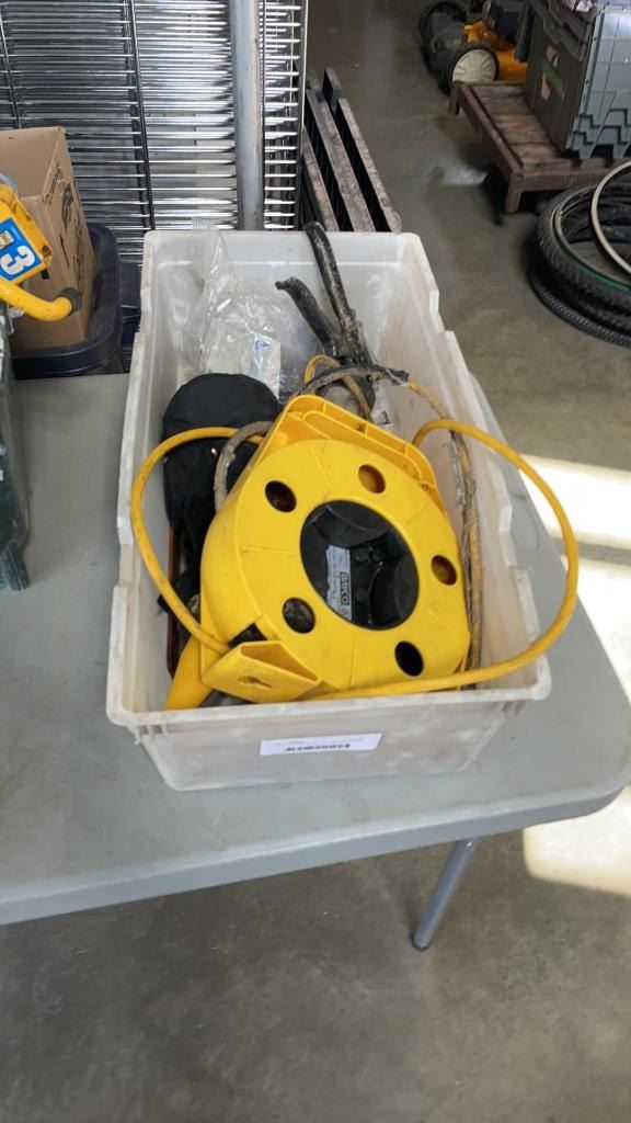 2 BINS OF WORKLIGHT, EXTENTION CORDS AND MORE