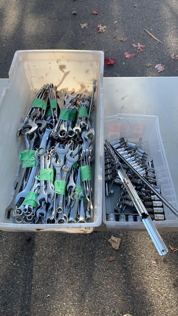 2 BINS OF WRENCHES AND SOCKETS