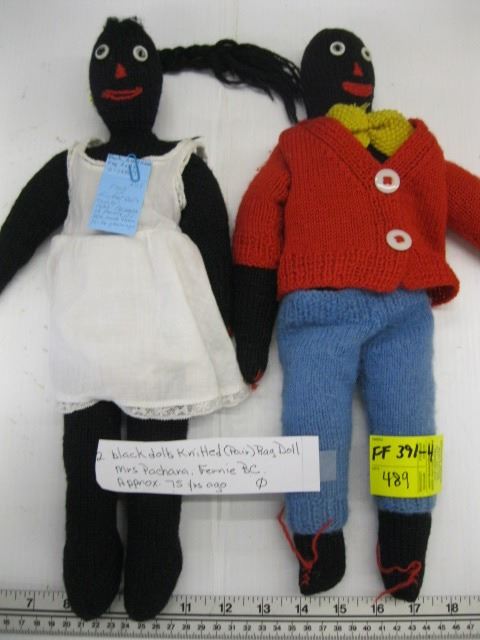 2 BLACK DOLLS, KNITTED MRS. PACHARA FERNIE, BC (APPROX. 75 YEARS AGO)