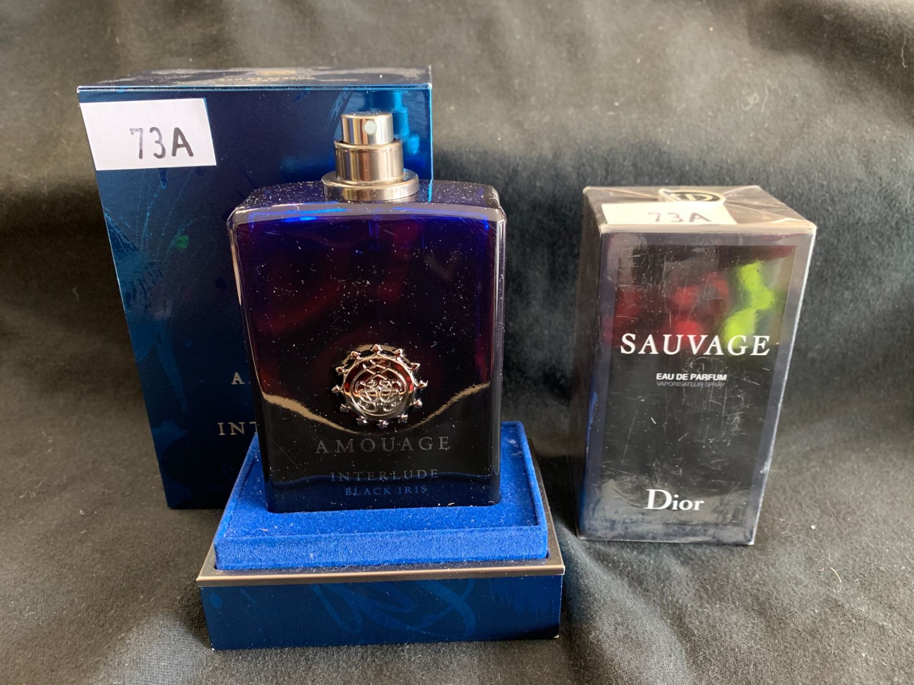 2 BOTTLES OF PERFUME, AMOUAGE INTERLUDE BLACK IRIS & SAUVAGE EAU DE PARFUM DIOR