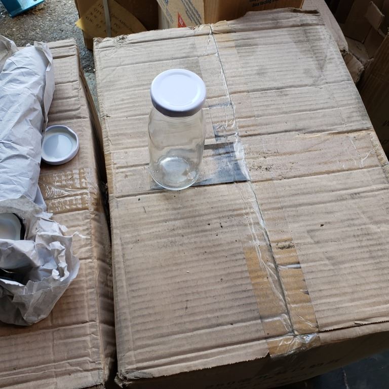 2 BOX OF 210 TOTAL GLASS BOTTLES 200ML SOME WITH LIDS
