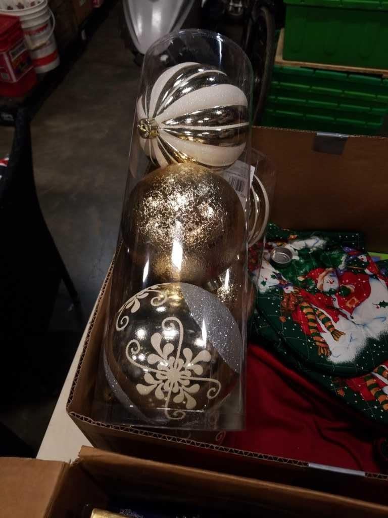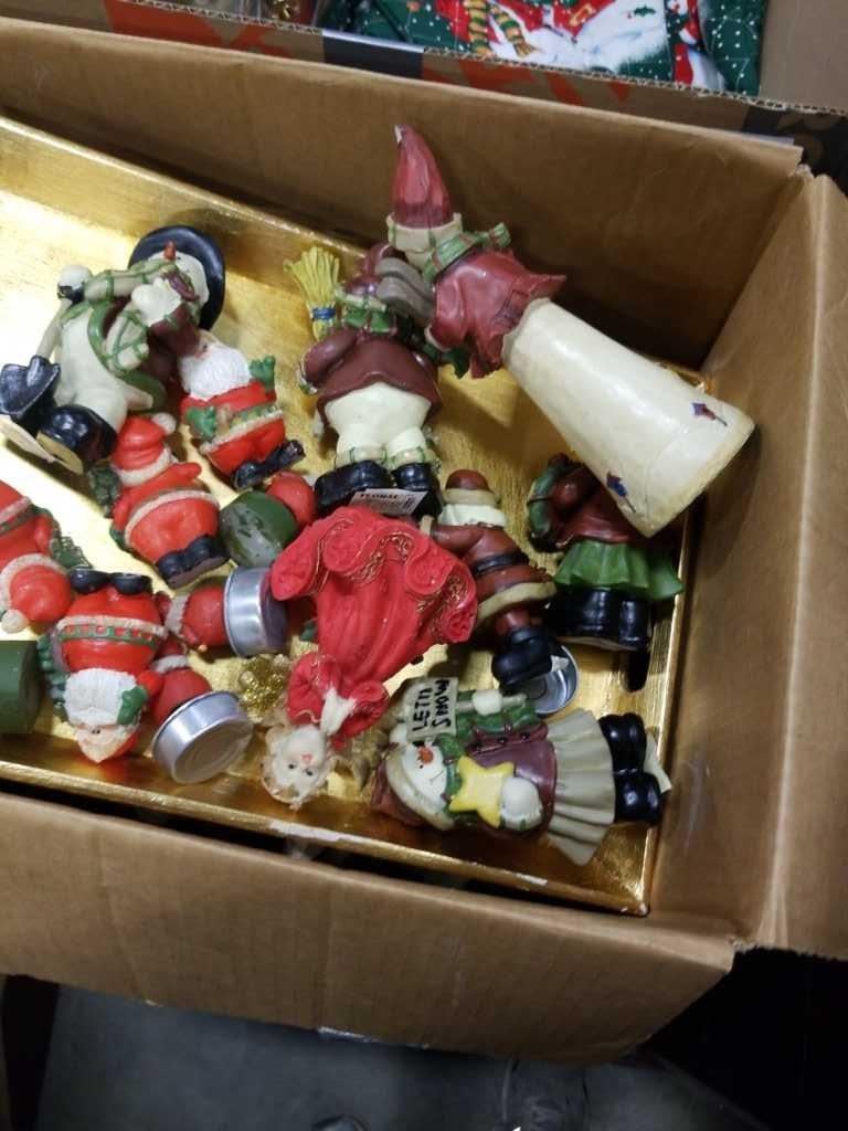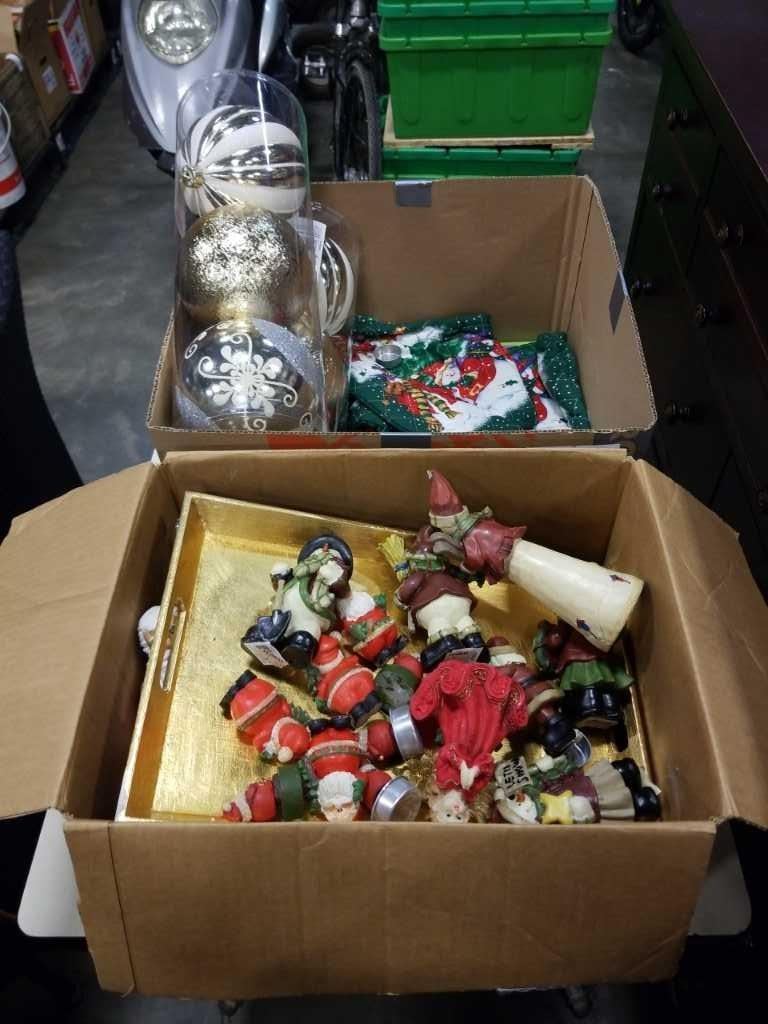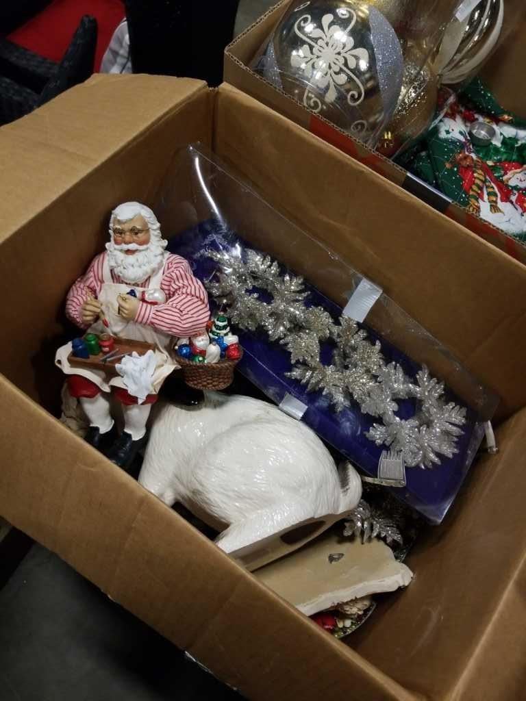 2 BOXES AND TRAY XMAS DECOR AND FIGURES