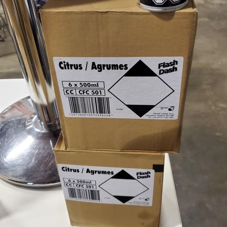 2 BOXES OF 6 BOTTLES FLASH DASH CITRUS AERSOL DASH BOARD CLEANER