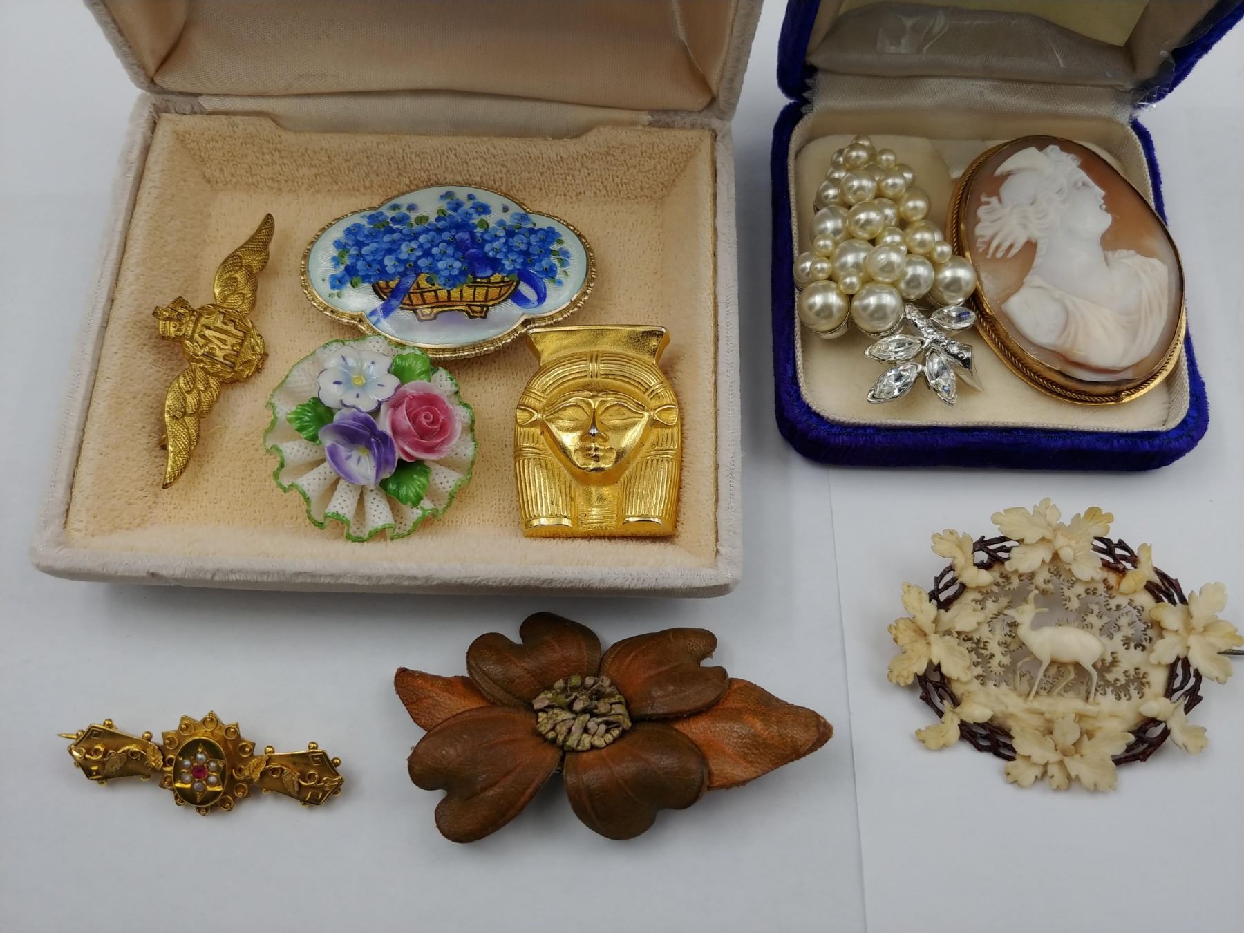 2 BOXES OF ASSORTED BROOCHES