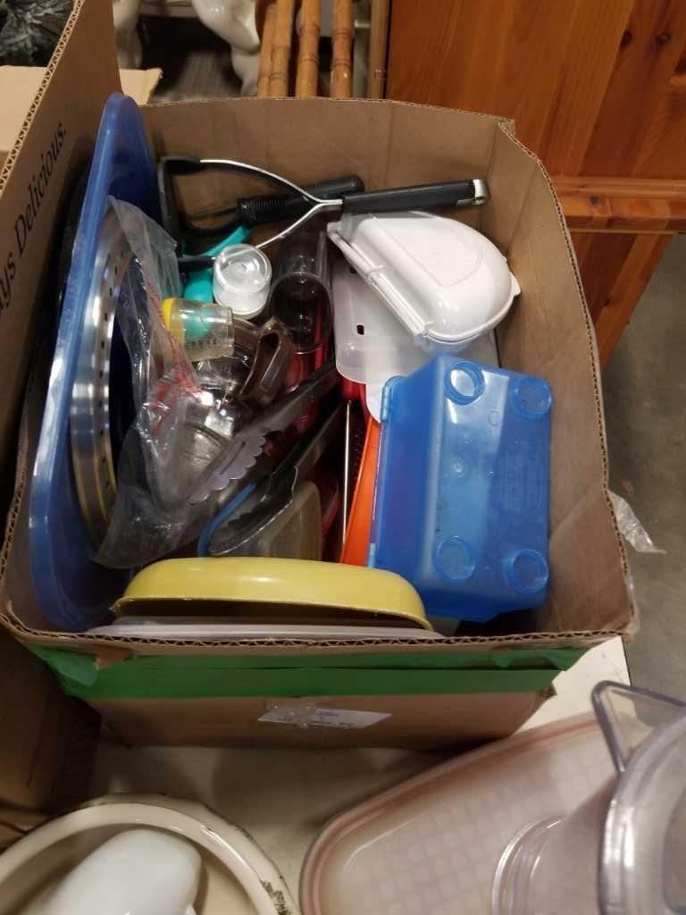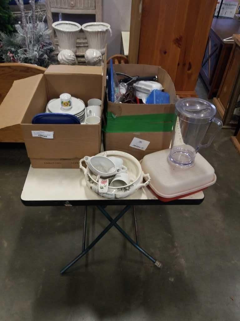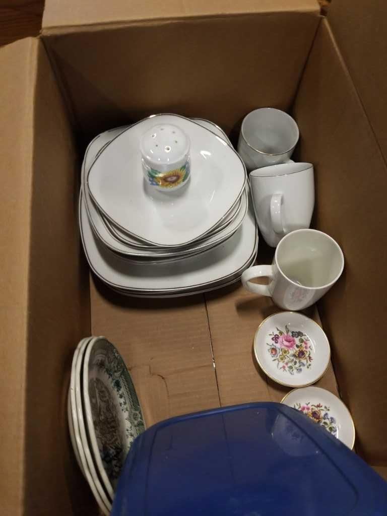 2 BOXES OF ASSORTED CHINA ,TABLEWARE AND KITCHEN ITEMS