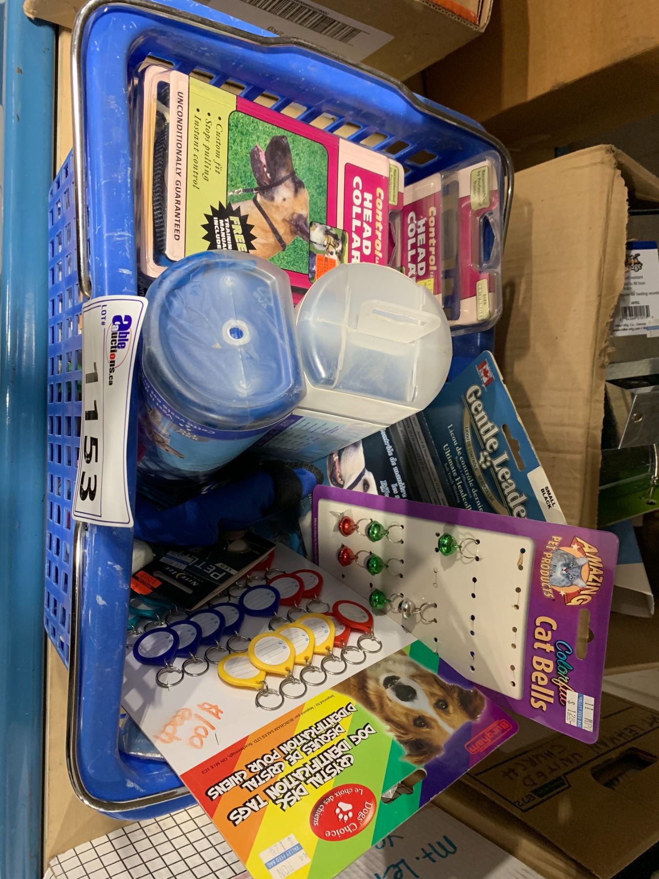 2 BOXES OF ASSORTED COOLING DOG VEST, WATER BOTTLE, NURSER BOTTLE, CAT BELLS, IDENTIFICATION TAGS,