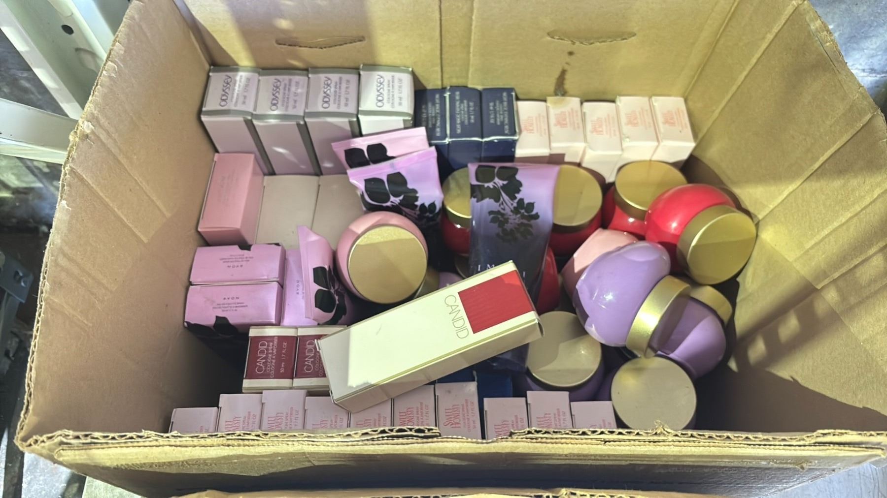 2 BOXES OF ASSORTED MAKEUP, CANDLES, SHOWER GEL, COLOGNE & MORE