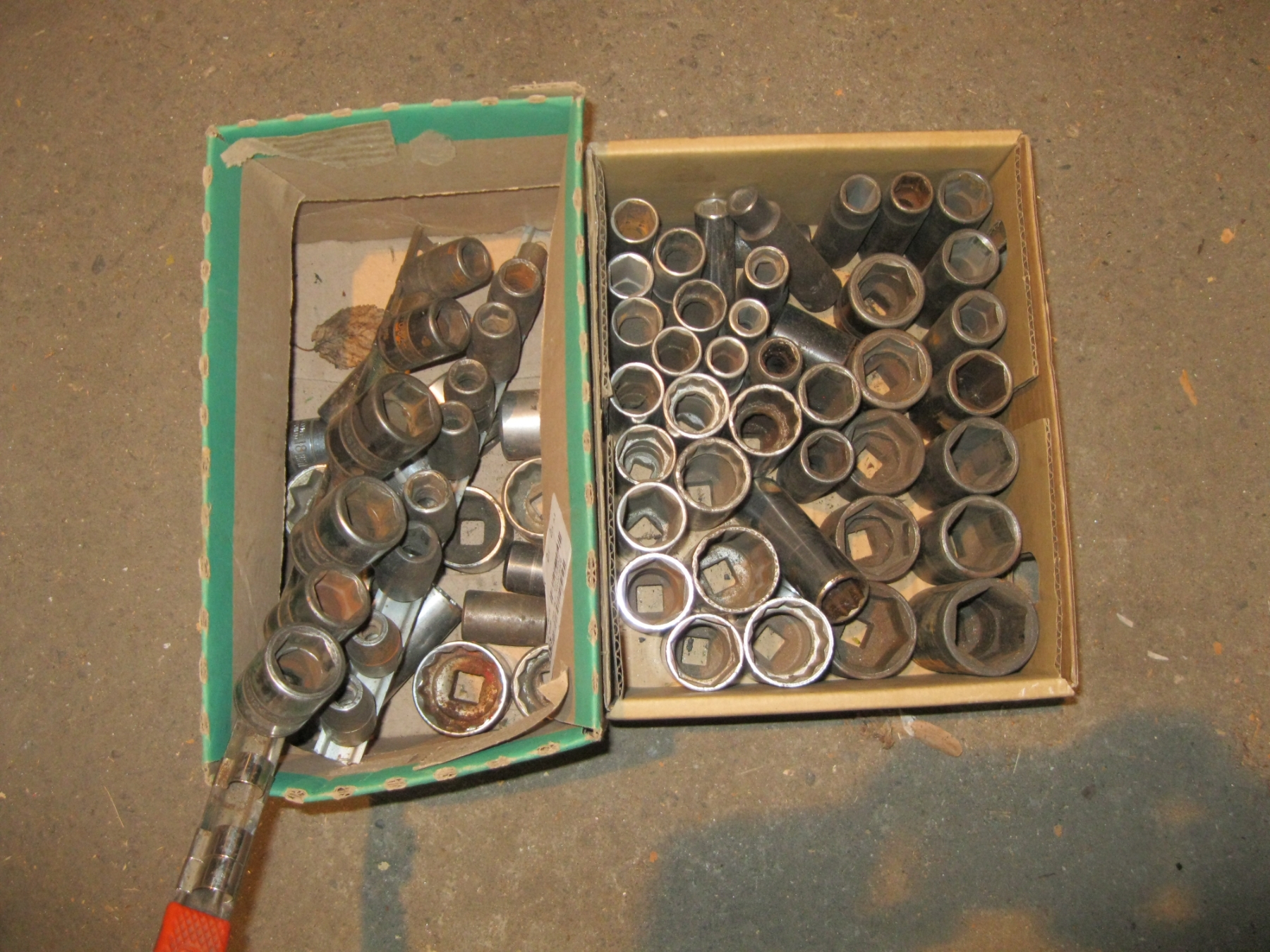 2 BOXES OF ASST. SOCKETS - MOSTLY 1/2  DRIVE, DEEP & SHALLOW