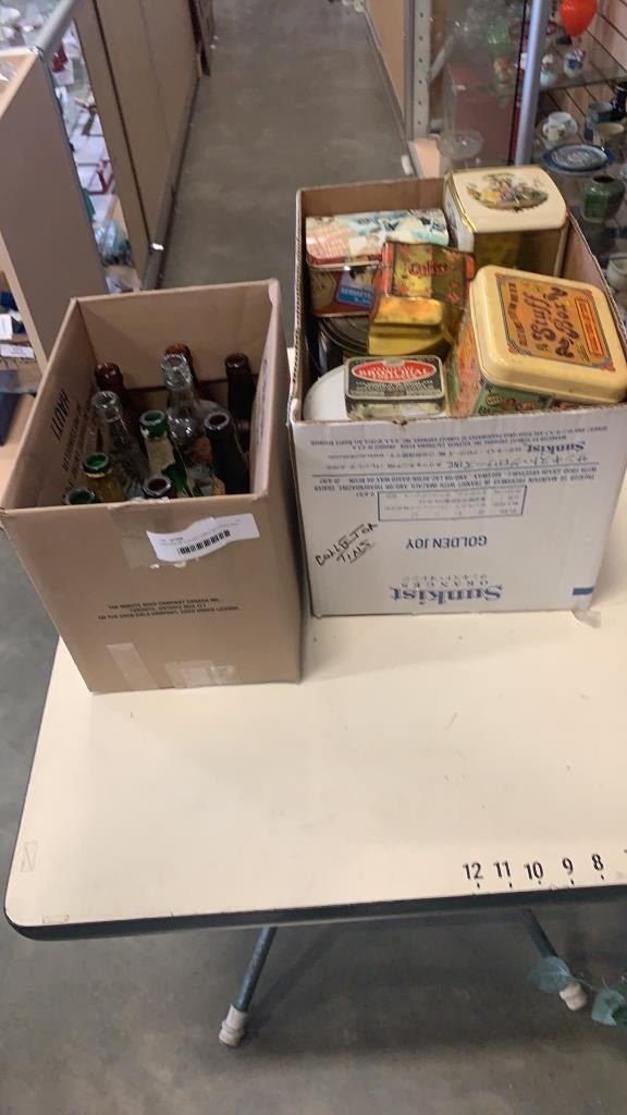 2 BOXES OF COLLECTABLE BOTTLES AND TINS