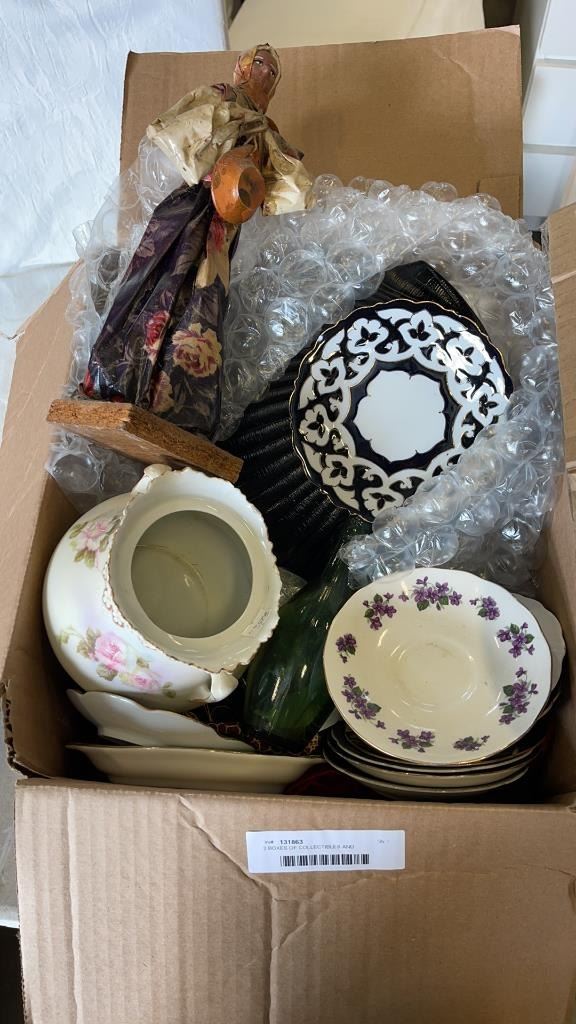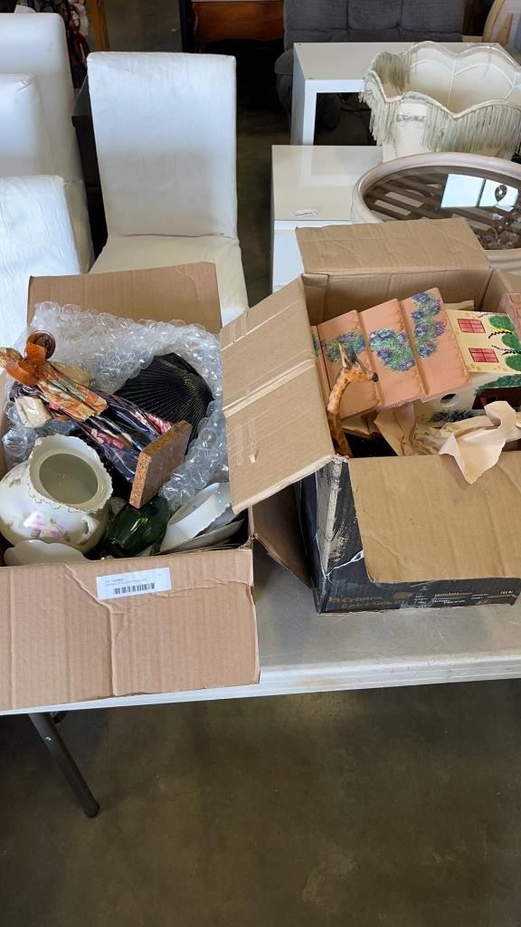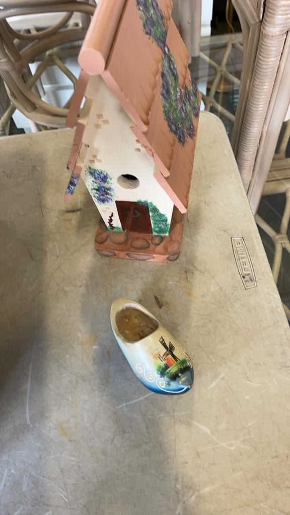2 BOXES OF COLLECTIBLES AND BIRDHOUSE