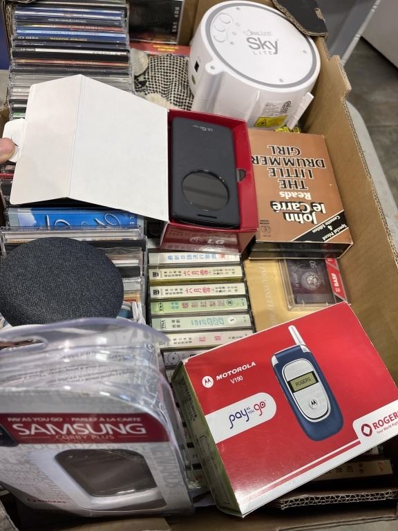 2 BOXES OF CONSOLES, CDS, VINTAGE RADIO, ETC