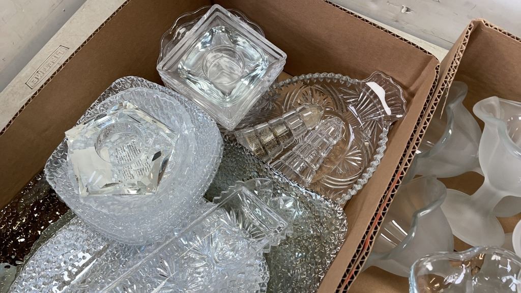 2 BOXES OF CRYSTAL AND FROSTED GLASS