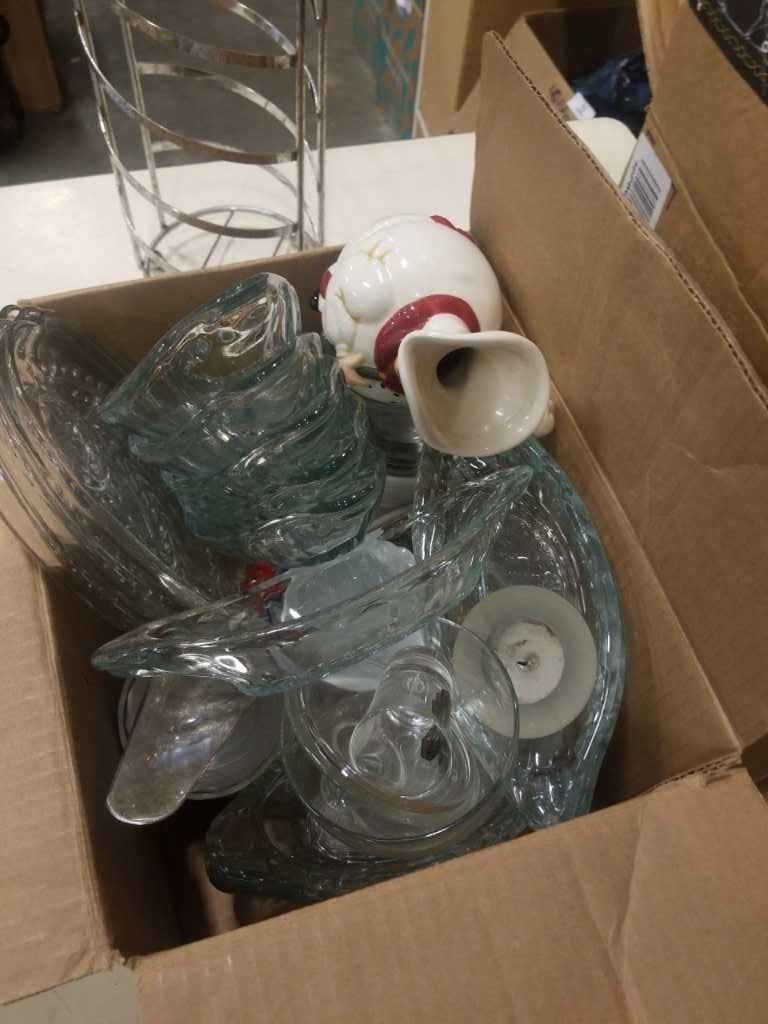 2 BOXES OF CRYSTAL AND GLASSWARE, COLECTIBLES