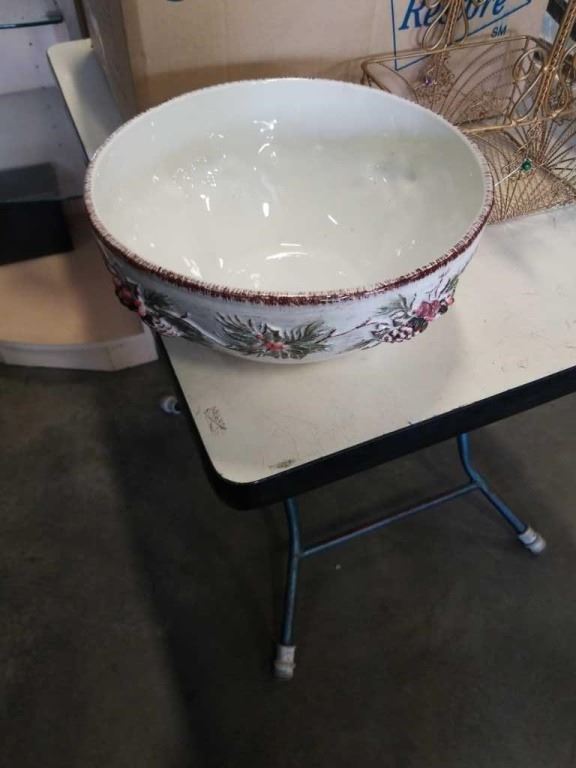 2 BOXES OF DECORATIONS, FIREPLACE COMPANION SET, PLATTERS