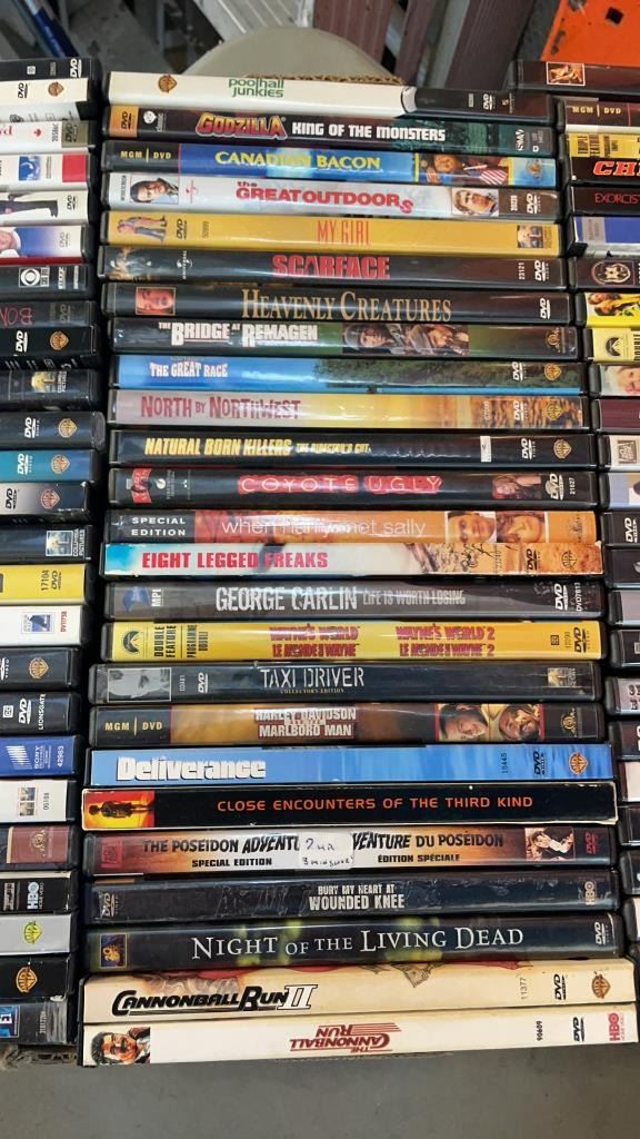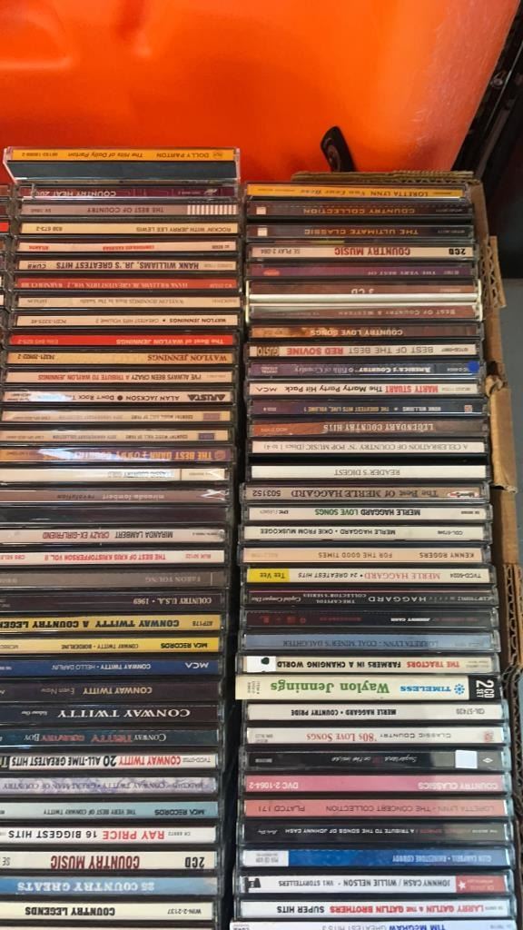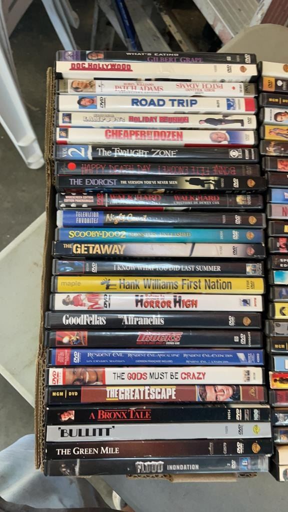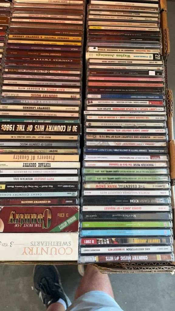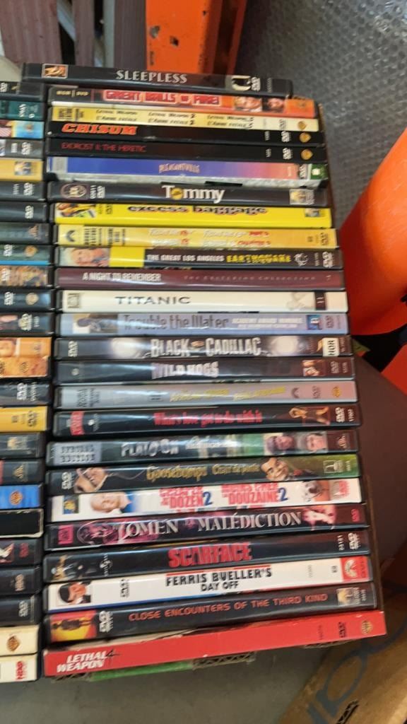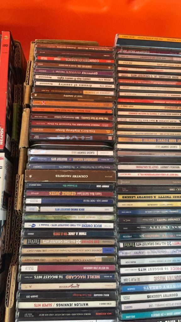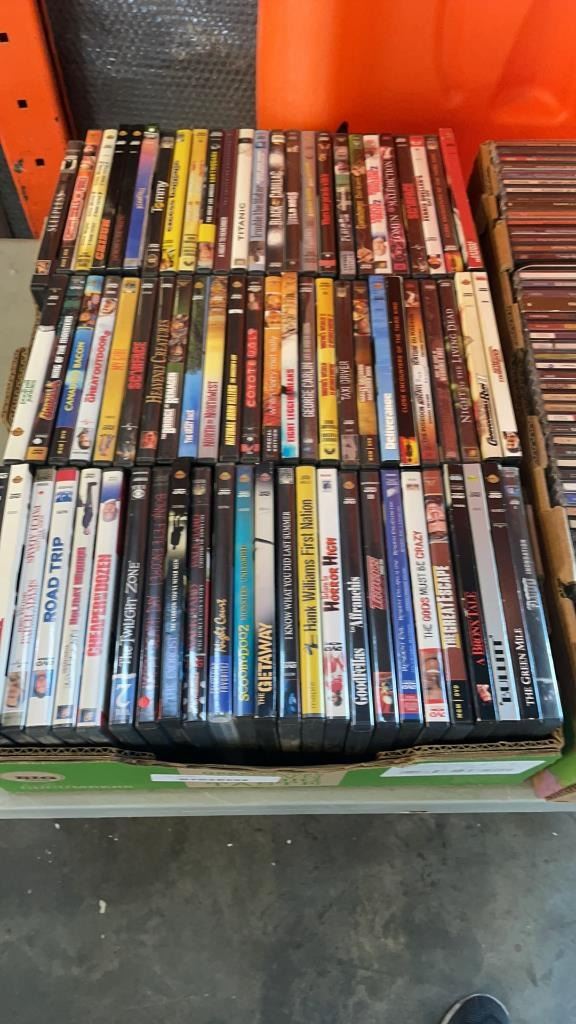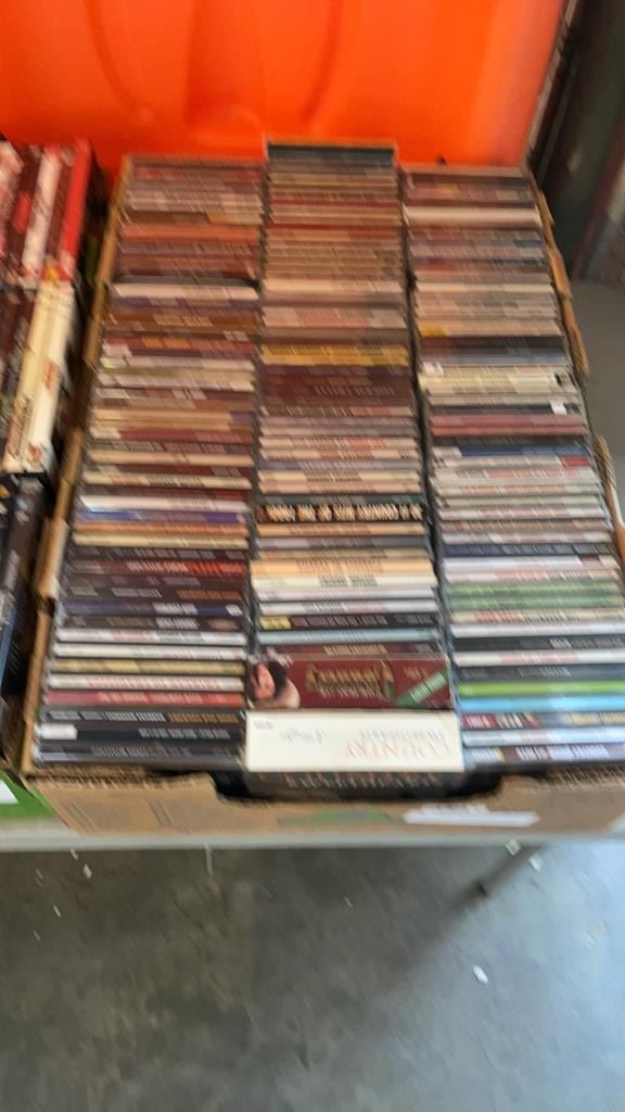 2 BOXES OF DVDS AND CDS APPROX 230 TOTAL