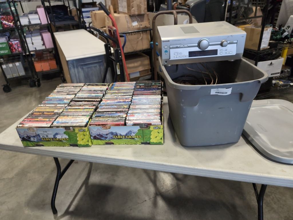2 BOXES OF DVDS AND PANASONIC HOME THEATRE SYSTEM