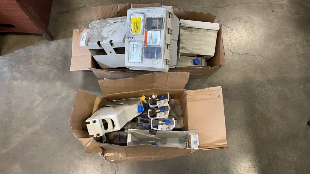 2 BOXES OF ECO LAB DISPENSERS AND LOCK BOXES